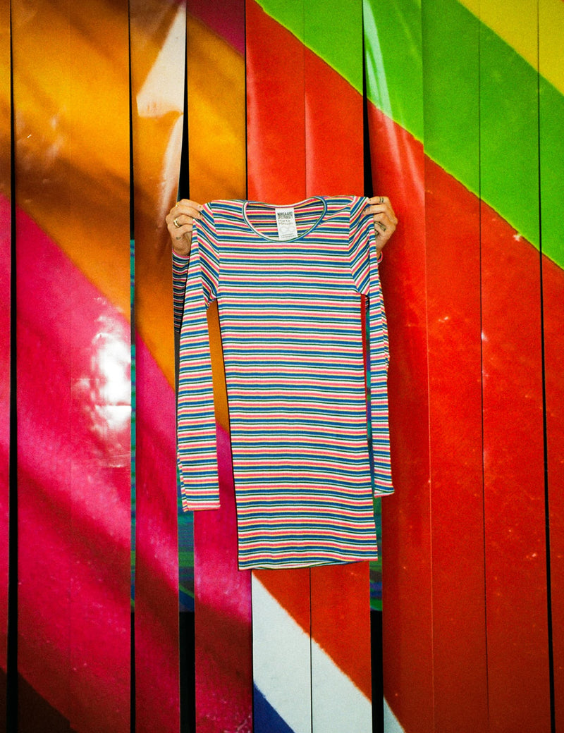 101 Marta x CC x Nørgaard paa Strøget is the classic striped #101 T-shirt with stripes. Nørgaard paa Strøget's #101 T-shirt was designed in 1967 by Jørgen Nørgaard. The T-shirt is knitted, dyed and sewn in Denmark and is made from 100% bci cotton. The #101 T-shirt is one-size, but comes in two different lengths.