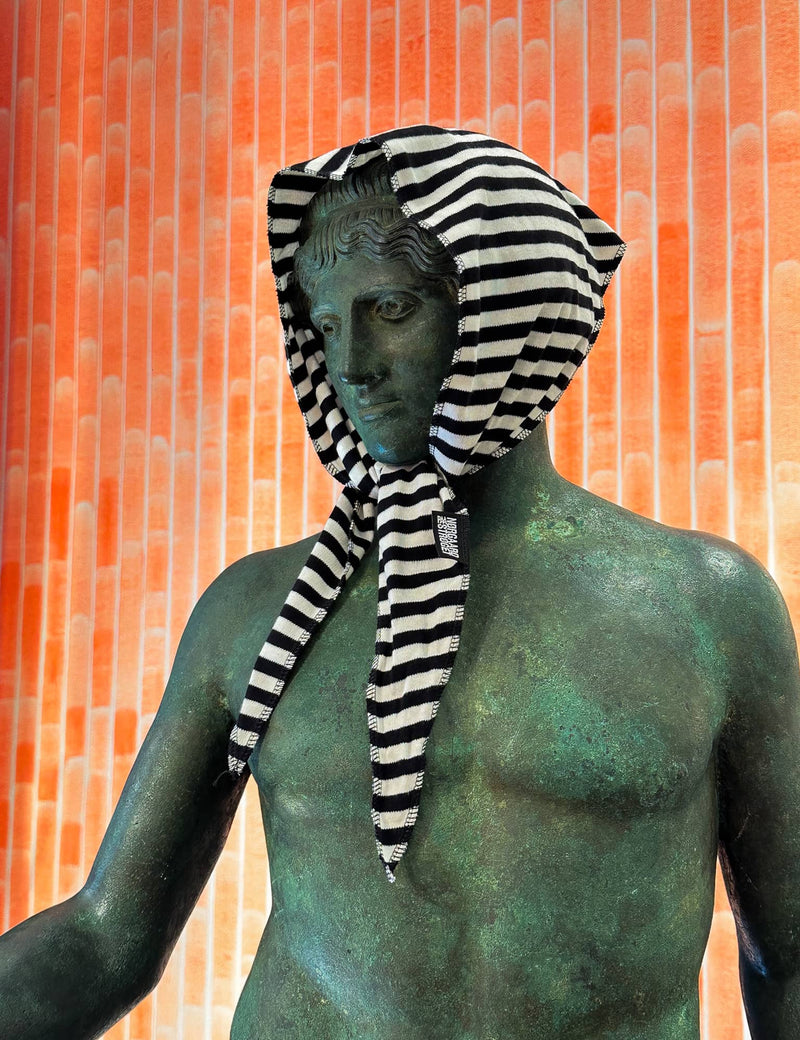 The Nørgaard paa Strøget Scarf Triangle is the classic #101 scarf with two wide stripes. The scarf is knitted, dyed and sewn in Denmark and made in 100% bci Cotton or wool.