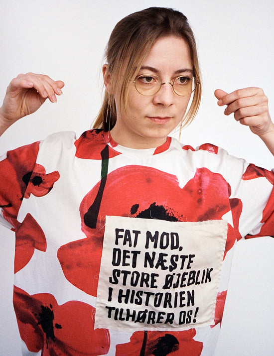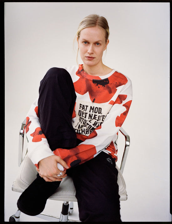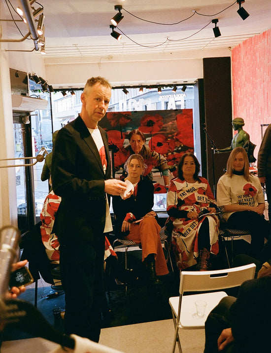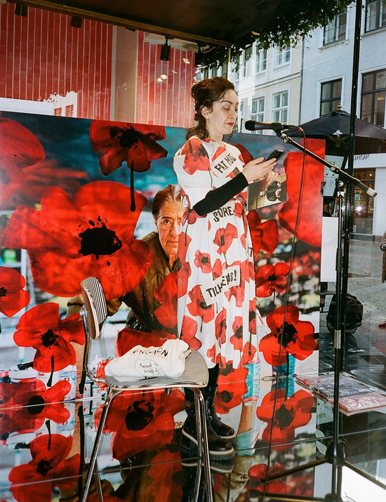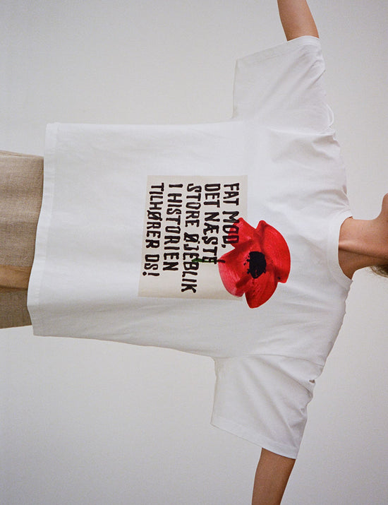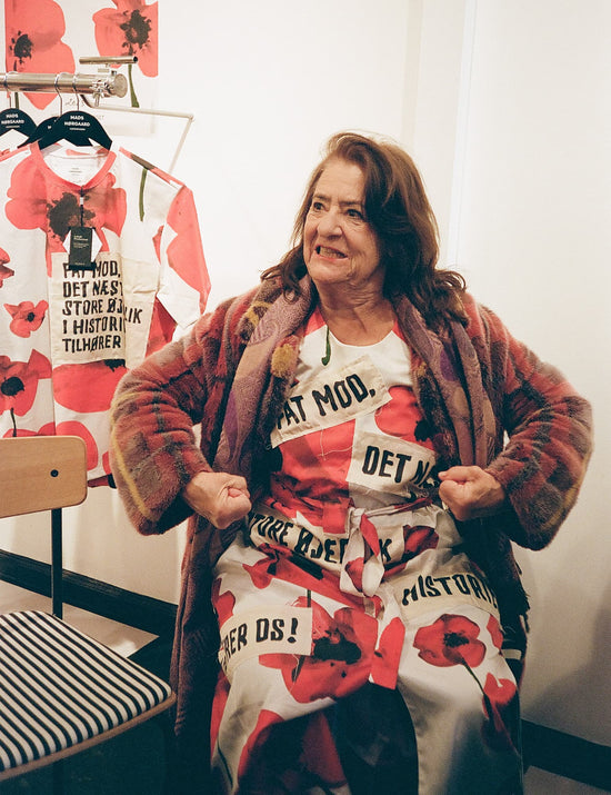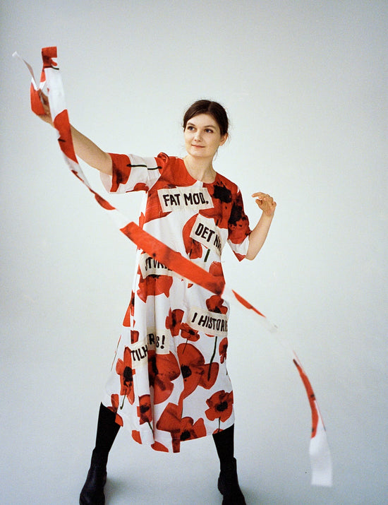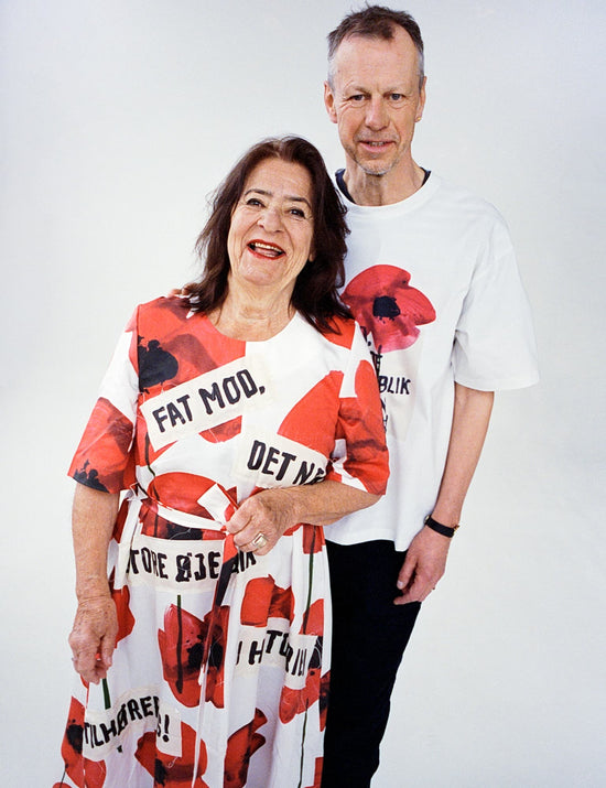 “In my collaboration with Mads I was given free rein to let my dresses fight! My poppies wanted to go out into the world and spread the message. The result is stronger than I could have imagined from the beginning. Poetry on the body and a greeting to everyone believing in a future of equality,” says Reuter Christiansen.