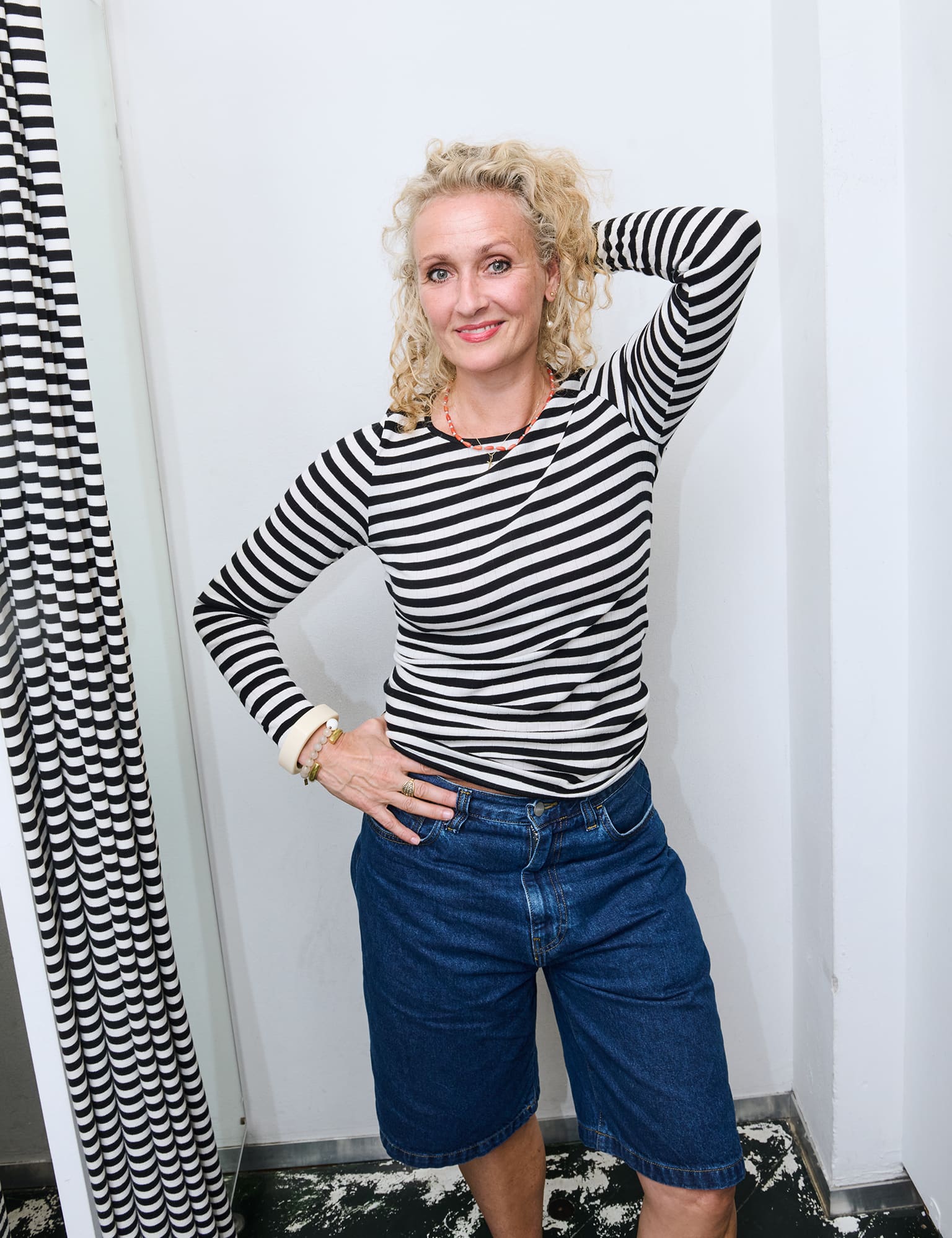 101 Broadway is the classic #101 T-shirt with two wide stripes. Nørgaard paa Strøget's #101 T-shirt was designed in 1967 by Jørgen Nørgaard. The T-shirt is knitted, dyed and sewn in Denmark and is made from 100% cotton. The #101 T-shirt is one-size, but comes in two different lengths. The long-sleeved T-shirt is produced in three different types of stripes and in all the different colours of the rainbow.