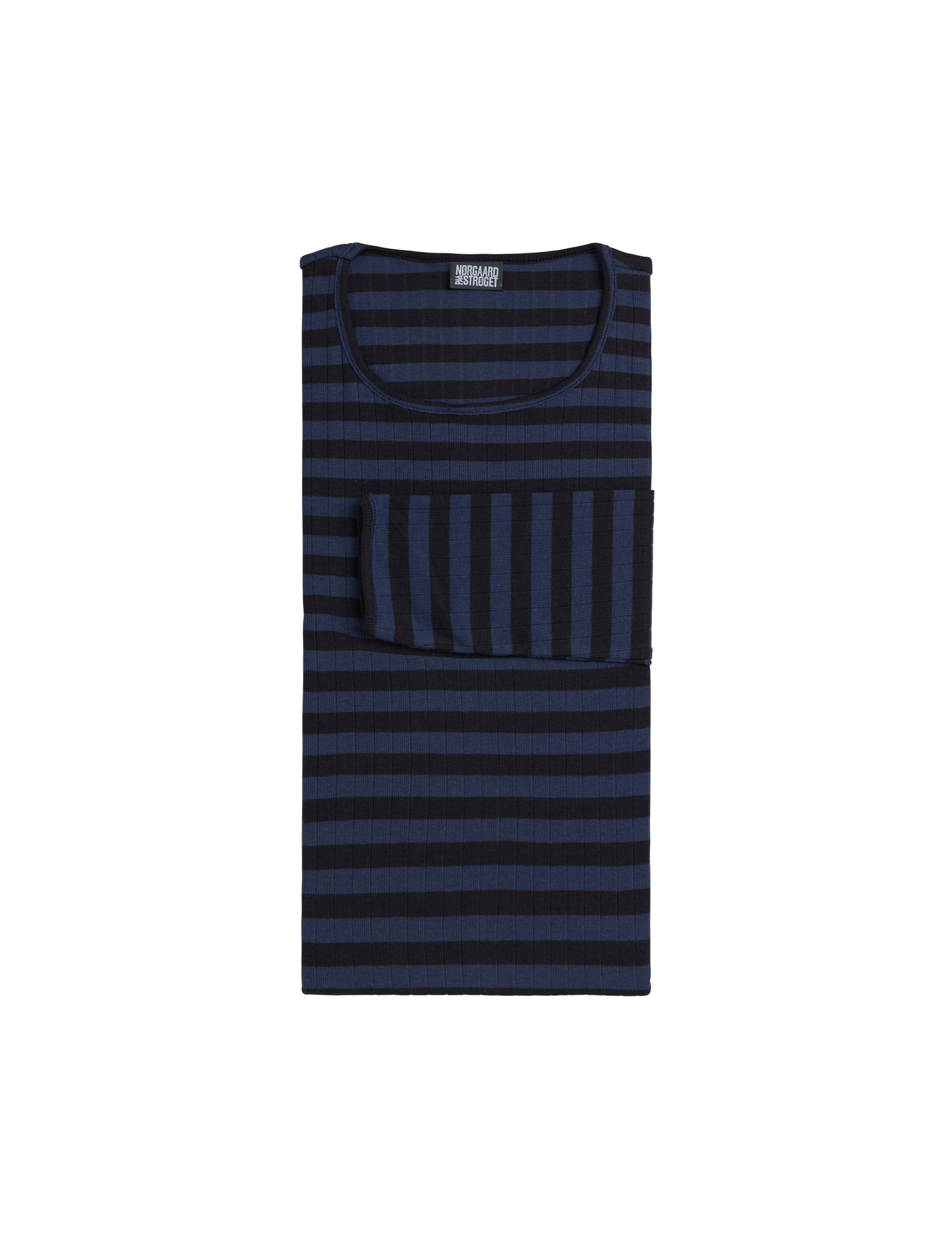 101 Broadway is the classic #101 T-shirt with two wide stripes. Nørgaard paa Strøget's #101 T-shirt was designed in 1967 by Jørgen Nørgaard. The T-shirt is knitted, dyed and sewn in Denmark and is made from 100% cotton. The #101 T-shirt is one-size, but comes in two different lengths. The long-sleeved T-shirt is produced in three different types of stripes and in all the different colours of the rainbow.