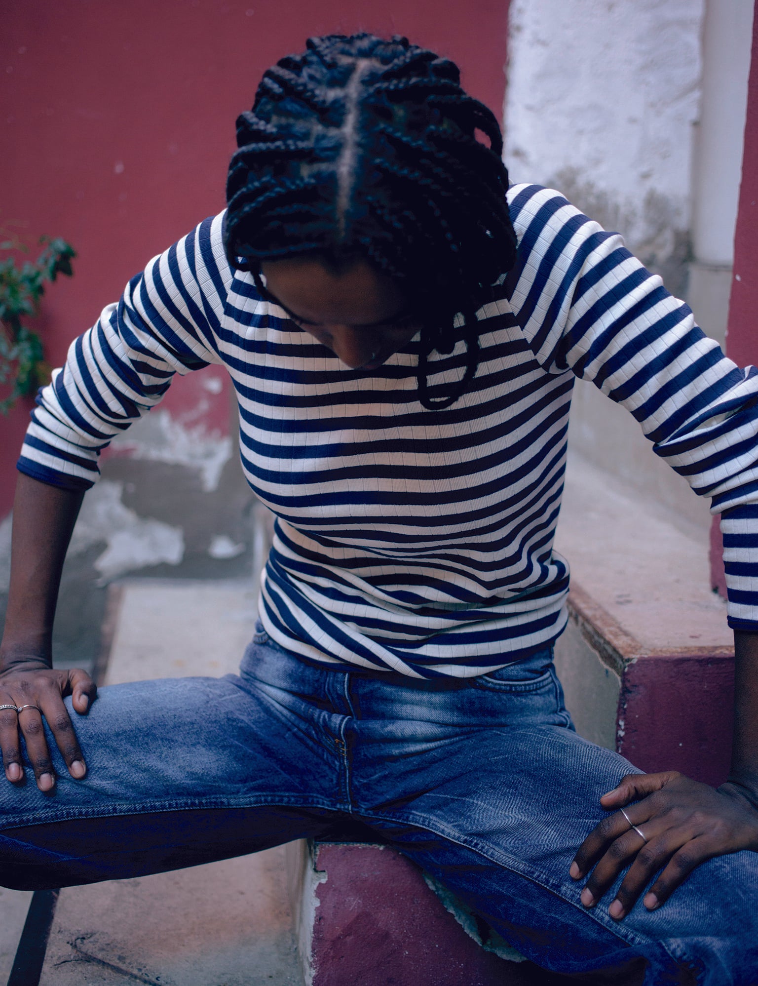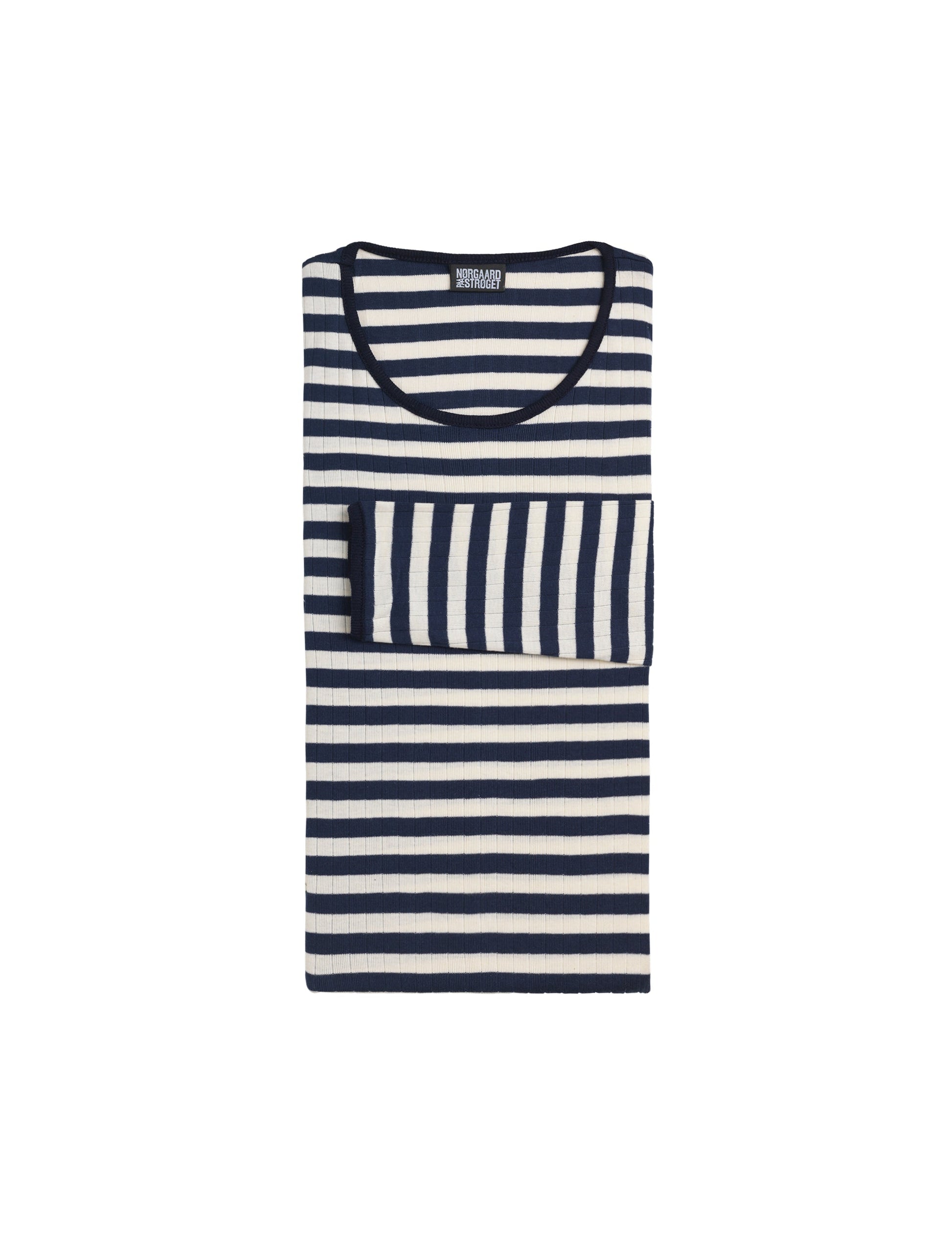 101 Broadway is the classic #101 T-shirt with two wide stripes. Nørgaard paa Strøget's #101 T-shirt was designed in 1967 by Jørgen Nørgaard. The T-shirt is knitted, dyed and sewn in Denmark and is made from 100% cotton. The #101 T-shirt is one-size, but comes in two different lengths. The long-sleeved T-shirt is produced in three different types of stripes and in all the different colours of the rainbow.