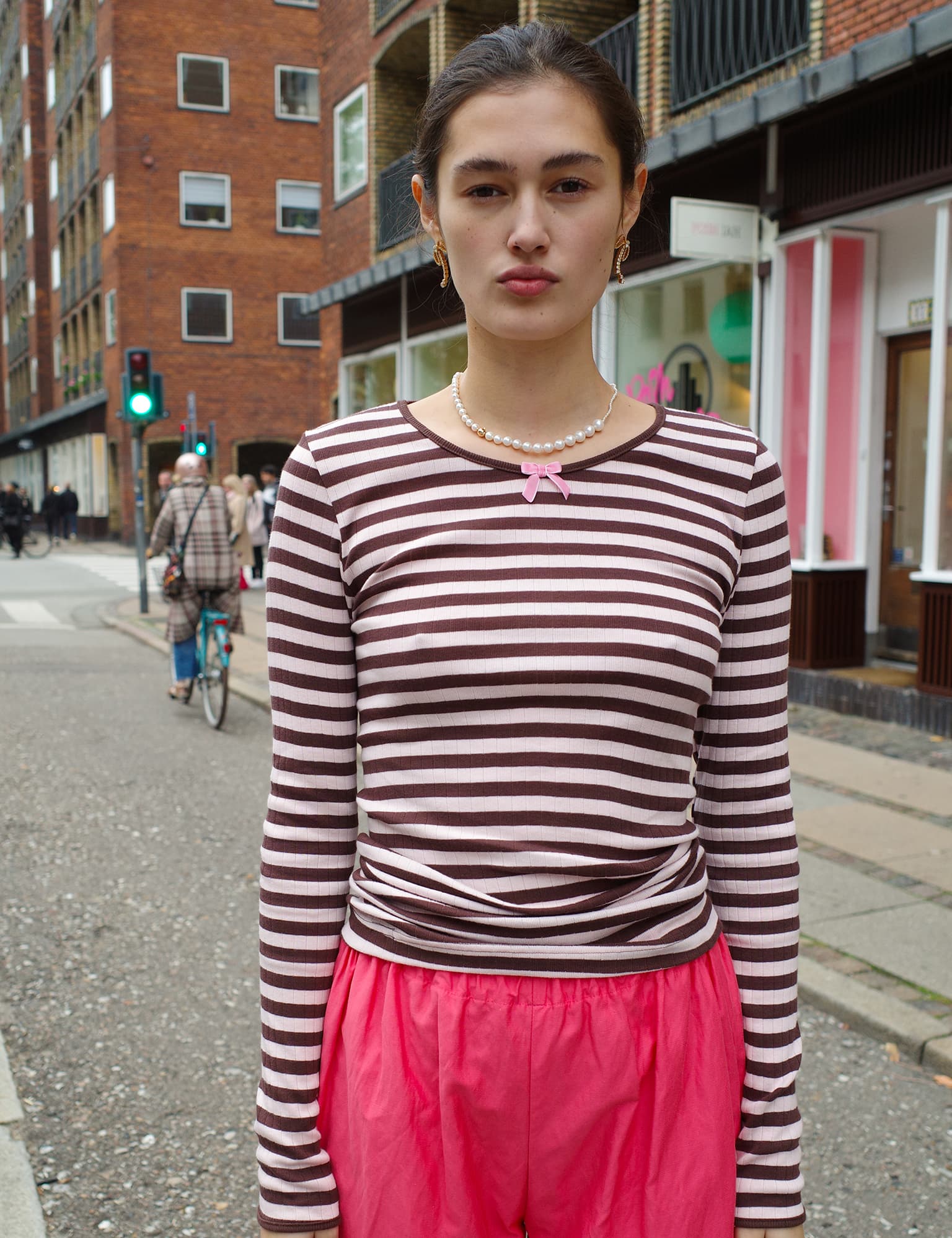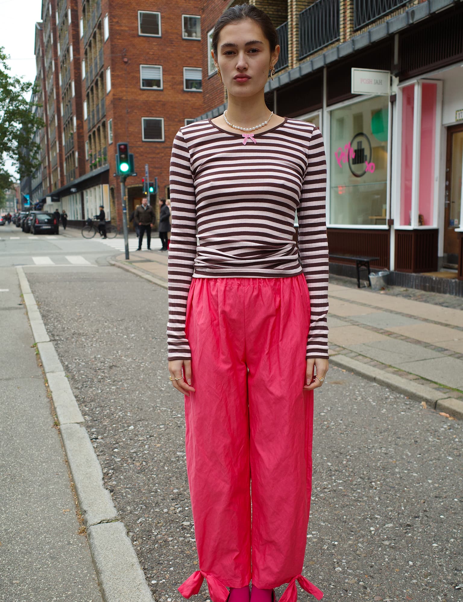101 Caro Editions is the classic #101 T-shirt in three different variations with a bow. Nørgaard paa Strøgets #101 T-shirt was designed in 1967 by Jørgen Nørgaard. The t-shirt is knitted, dyed and sewn in Denmark and made of 100% cotton. The #101 T-shirt is one size, but is available in two different lengths.