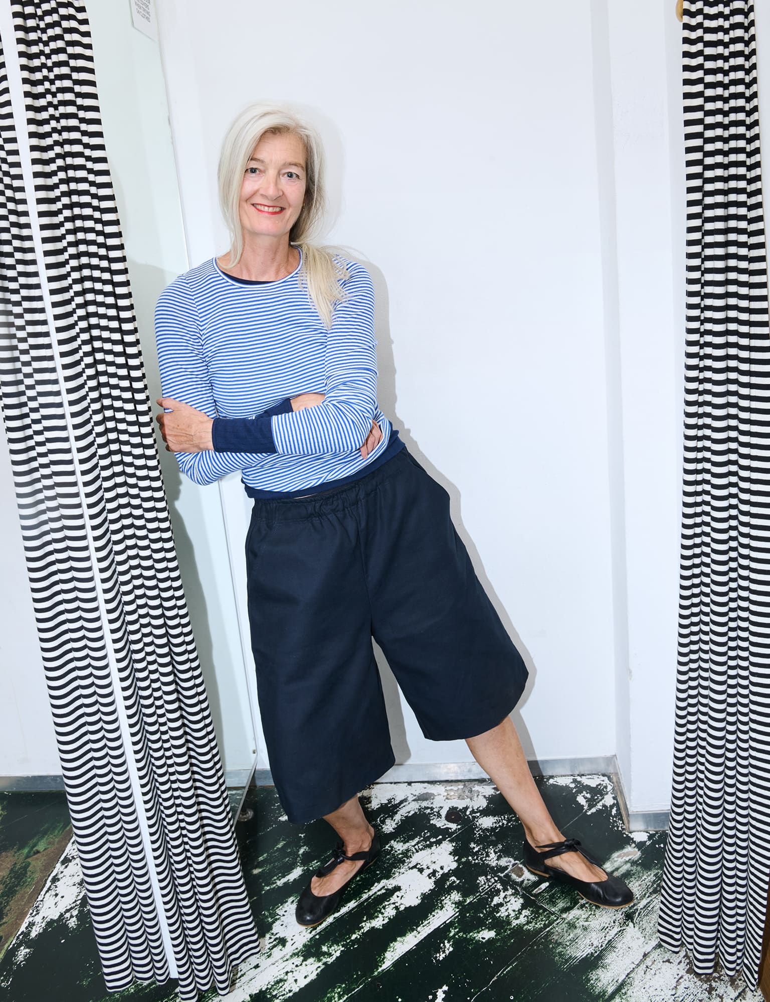 101 Fine Stripe is a #101 T-shirt with fine stripes. Nørgaard paa Strøget's #101 T-shirt was designed in 1967 by Jørgen Nørgaard. The T-shirt is knitted, dyed and sewn in Denmark and is made from 100% bci cotton. The #101 T-shirt is one-size, but comes in two different lengths. The long-sleeved T-shirt is produced in three different types of stripes and in all the different colours of the rainbow.