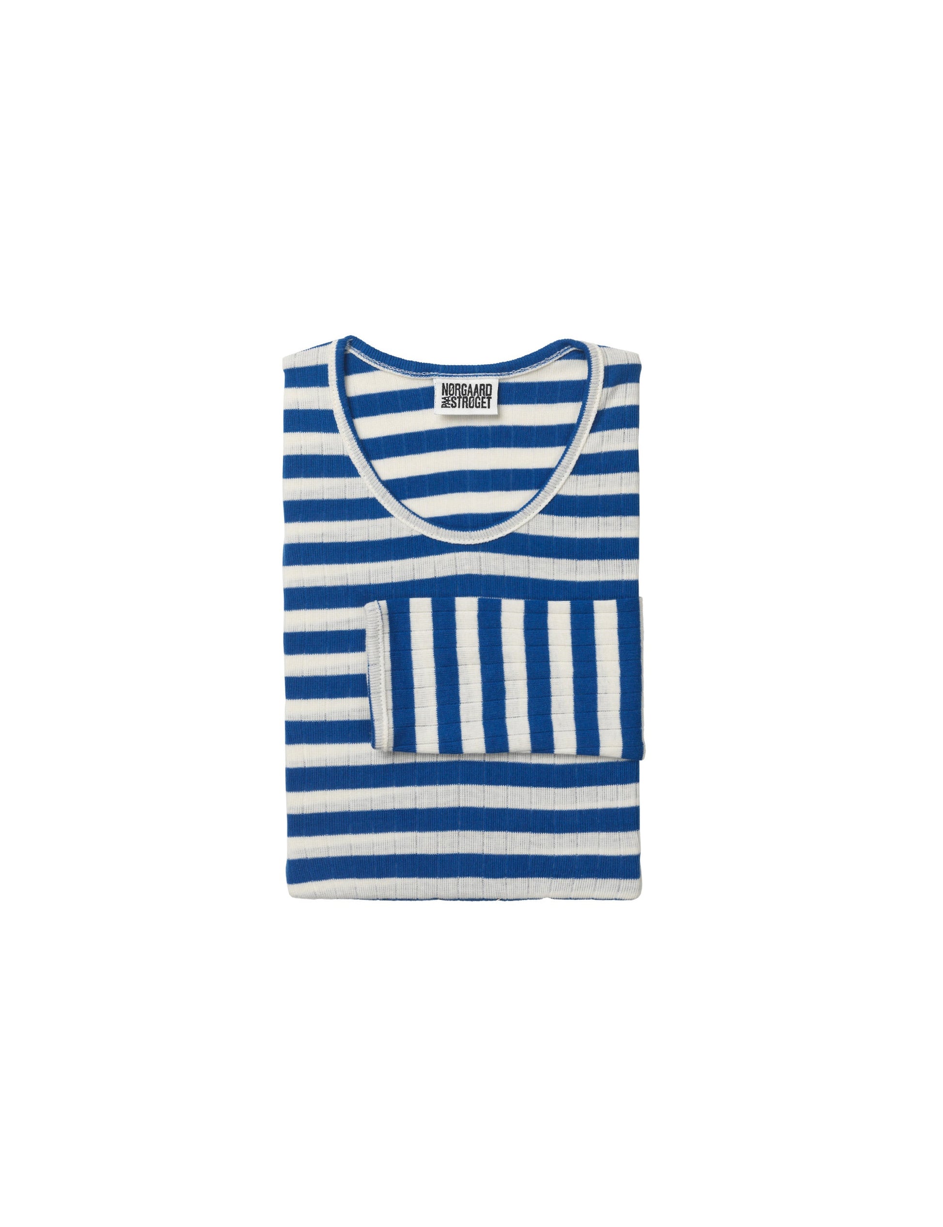 101 Kids Broadway is the classic #101 T-shirt in a wide striped version for kids. Nørgaard paa Strøget's #101 T-shirt was designed in 1967 by Jørgen Nørgaard. The T-shirt is knitted, dyed and sewn in Denmark and is made from 100% bci cotton. The #101 T-shirt for kids comes in a size range unlike the t-shirt for women. The long-sleeved T-shirt is produced in three different types of stripes and in all the different colours of the rainbow.   The #101 t-shirt for kids was made when Englebørn opened in 1973.