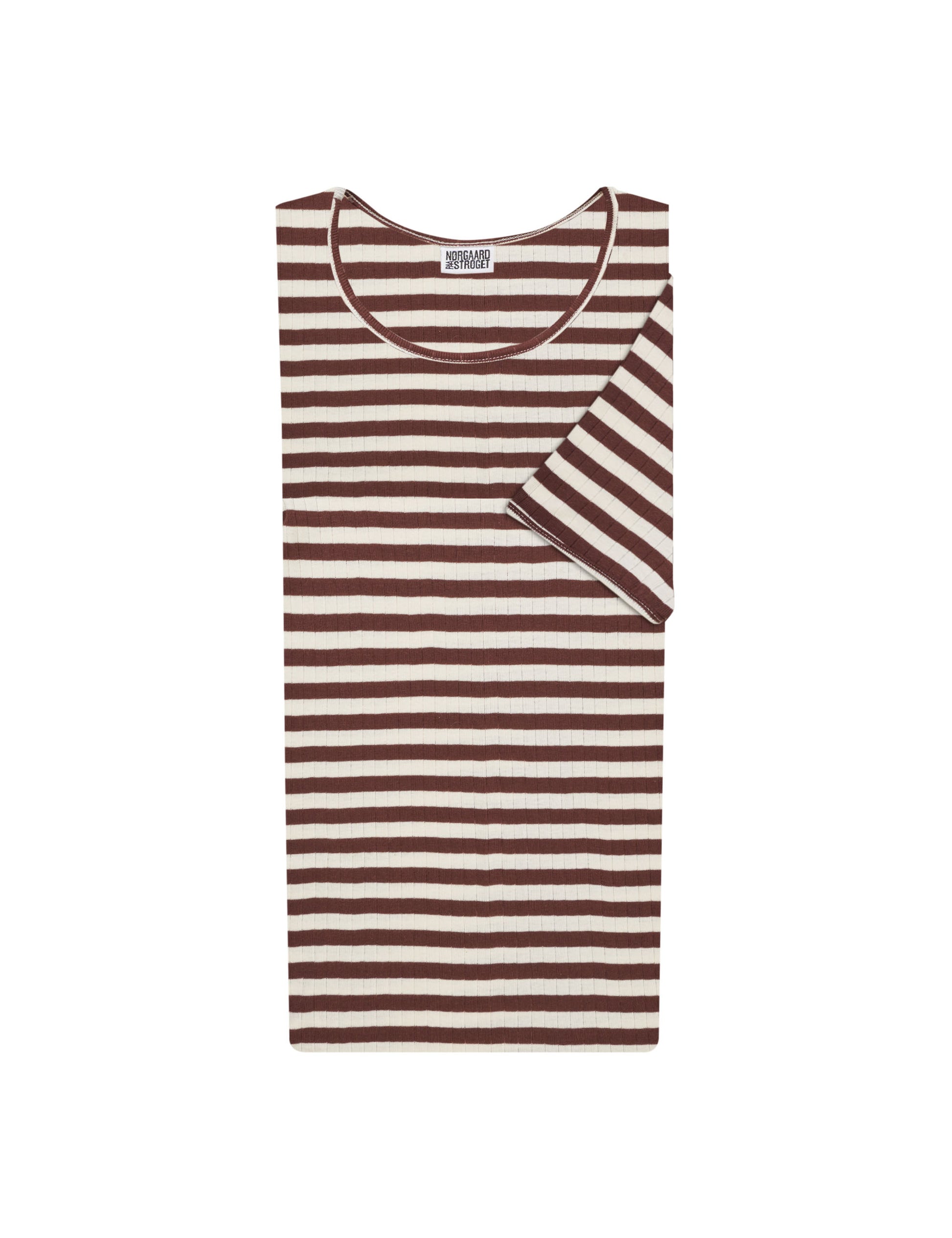 101 Short Sleeve Broadway Color is the classic #101 T-shirt in a short-sleeved, wide-striped version. Nørgaard paa Strøget's #101 T-shirt was designed in 1967 by Jørgen Nørgaard. The T-shirt is knitted, dyed and sewn in Denmark and is made from 100% cotton. The #101 Short Sleeve is one-size. The T-shirt is produced in three different types of stripes and in all the different colours of the rainbow.,