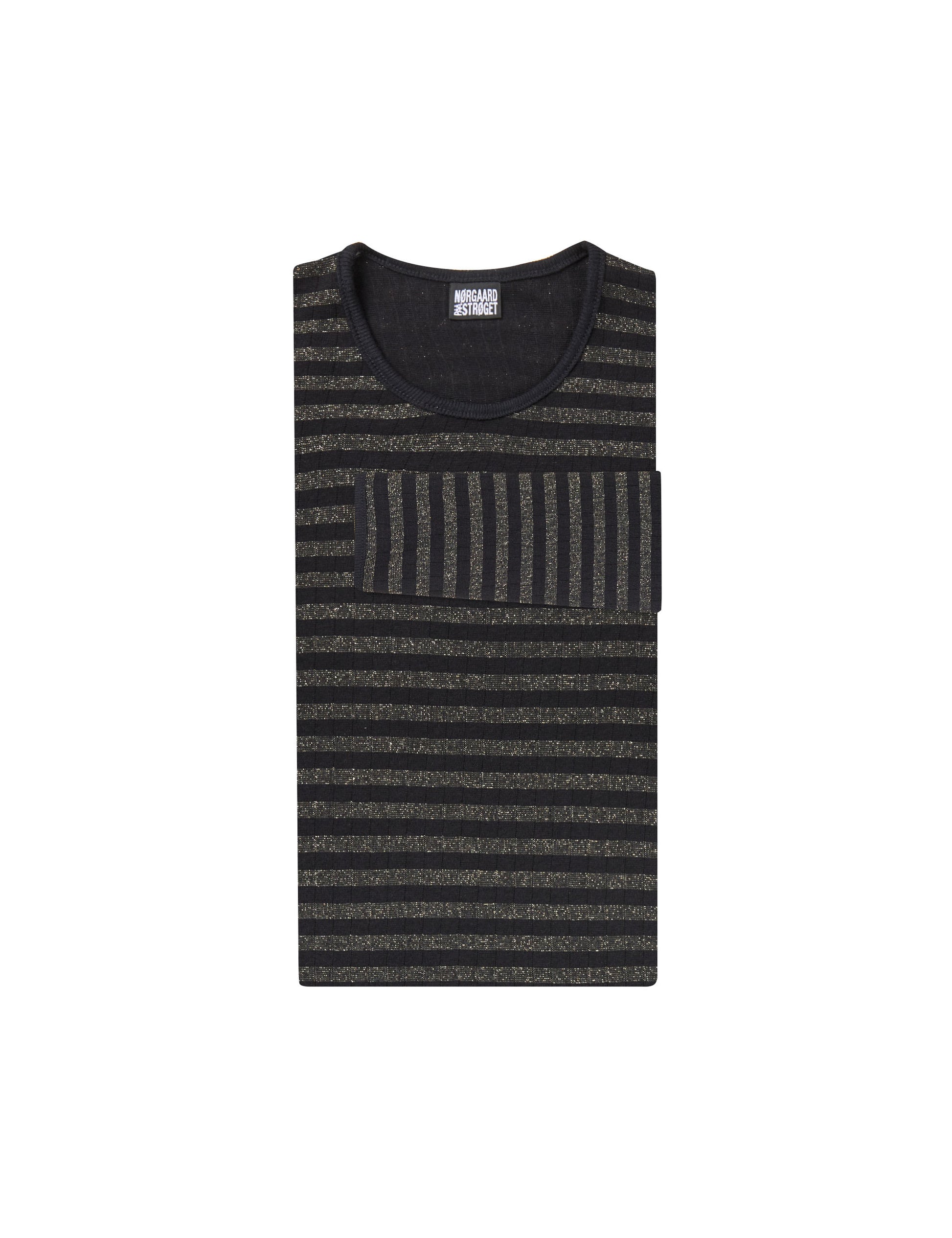 101 Teen Glam is our #101 T-shirt in glitter. Nørgaard paa Strøgets #101 T-shirt was designed in 1967 by Jørgen Nørgaard. The t-shirt is knitted, dyed and sewn in Denmark and made in 50% Cotton and 50% Lurex. The #101 T-shirt for Teens is made in one size. The #101 T-shirt for kids was made in connection with the opening of Englebørn in 1973.