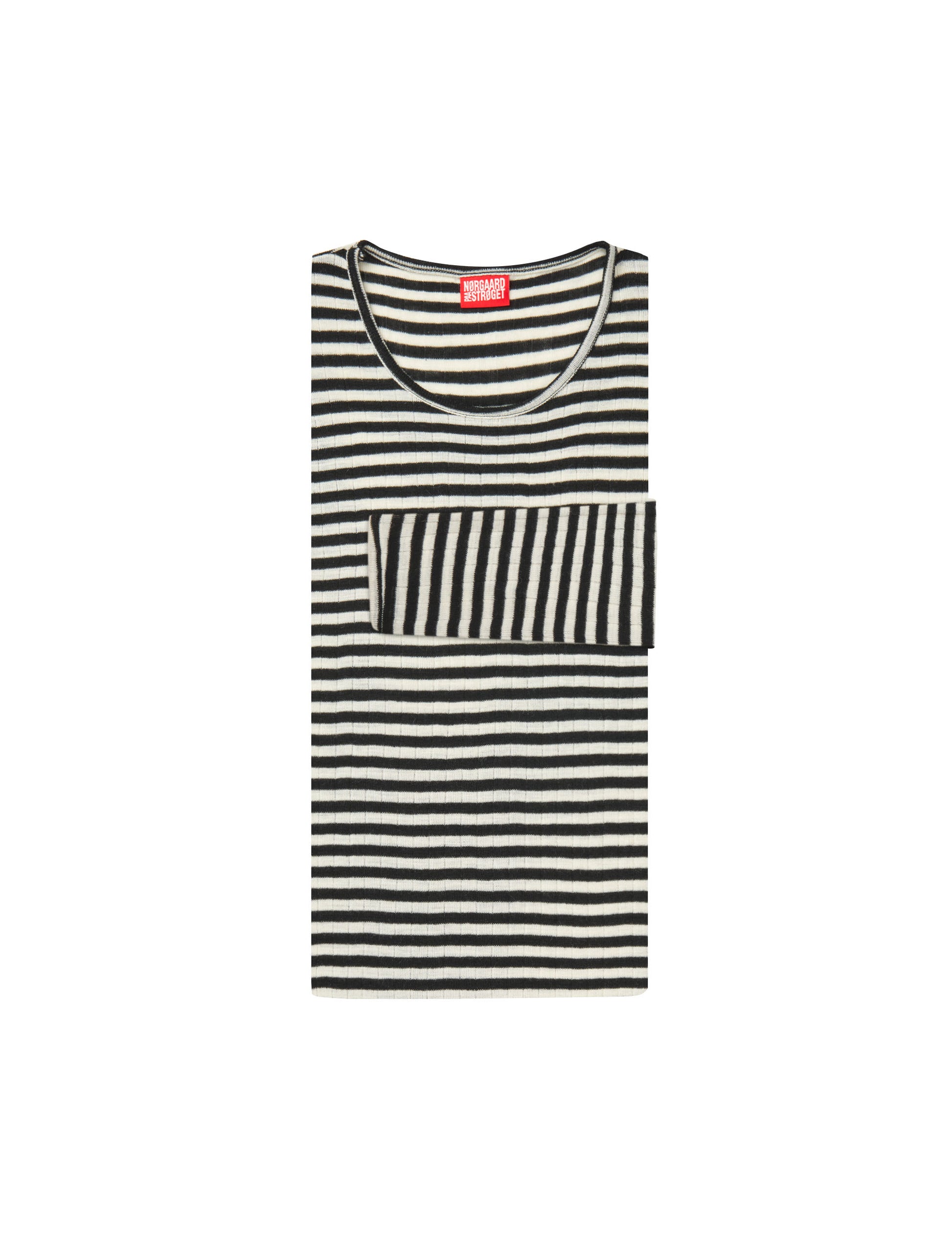 101 Wool is the classic #101 T-shirt in a single solid colour, produced in merino wool. Nørgaard paa Strøget's #101 T-shirt was designed in 1967 by Jørgen Nørgaard. This T-shirt is knitted, dyed and sewn in Denmark and is made from 100% wool. The #101 T-shirt is one-size, but comes in two different lengths. The long-sleeved T-shirt is produced in three different types of stripes and in all the different colours of the rainbow.