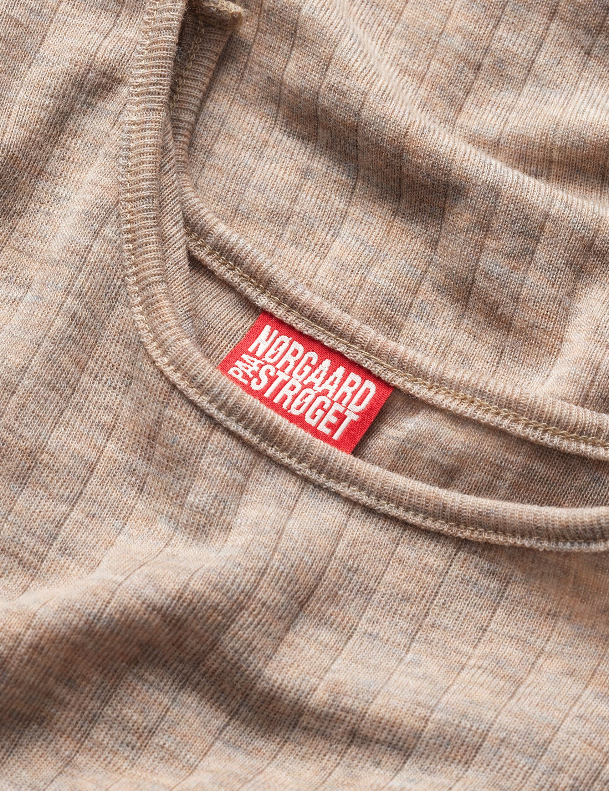 101 Wool is the classic #101 T-shirt in a single solid colour, produced in merino wool. Nørgaard paa Strøget's #101 T-shirt was designed in 1967 by Jørgen Nørgaard. This T-shirt is knitted, dyed and sewn in Denmark and is made from 100% wool. The #101 T-shirt is one-size, but comes in two different lengths. The long-sleeved T-shirt is produced in three different types of stripes and in all the different colours of the rainbow.