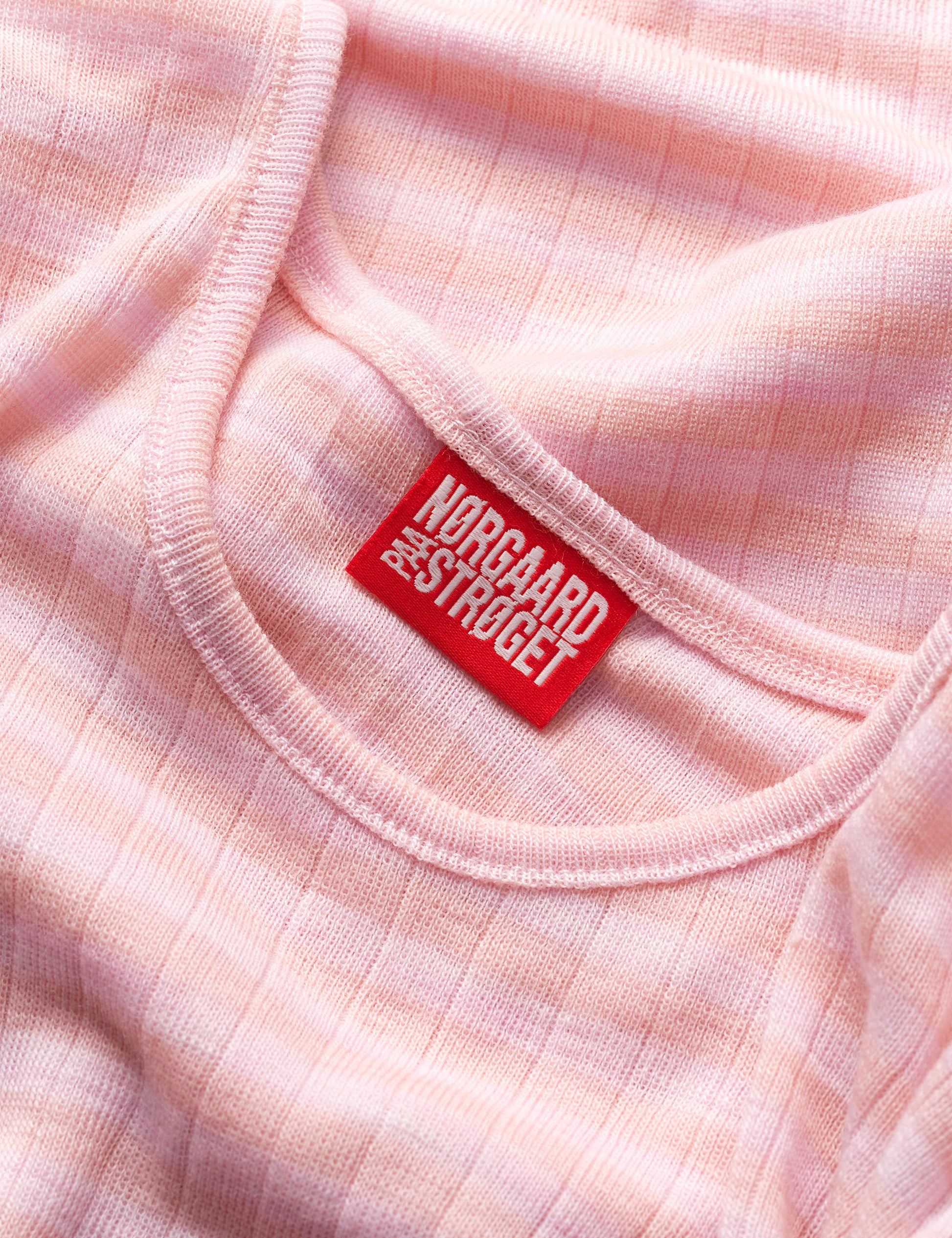 101 Wool is the classic #101 T-shirt in a single solid colour, produced in merino wool. Nørgaard paa Strøget's #101 T-shirt was designed in 1967 by Jørgen Nørgaard. This T-shirt is knitted, dyed and sewn in Denmark and is made from 100% wool. The #101 T-shirt is one-size, but comes in two different lengths. The long-sleeved T-shirt is produced in three different types of stripes and in all the different colours of the rainbow.