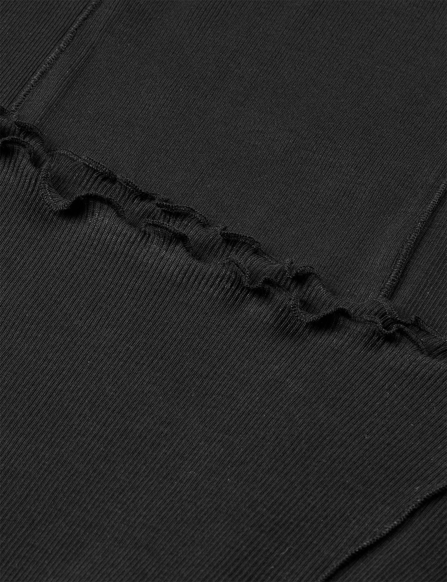 Fitted and stretchy long-sleeved T-shirt with a boat neck and lettuce hem.