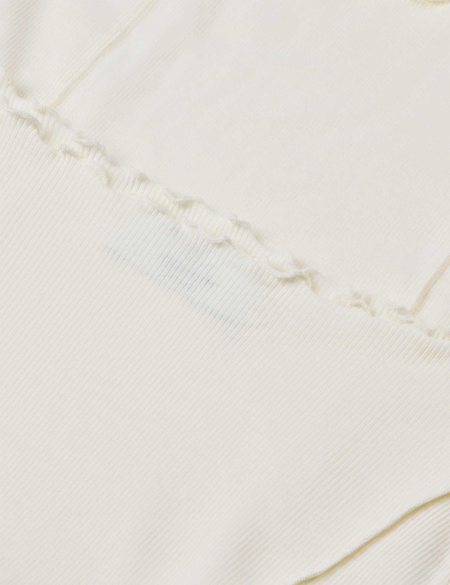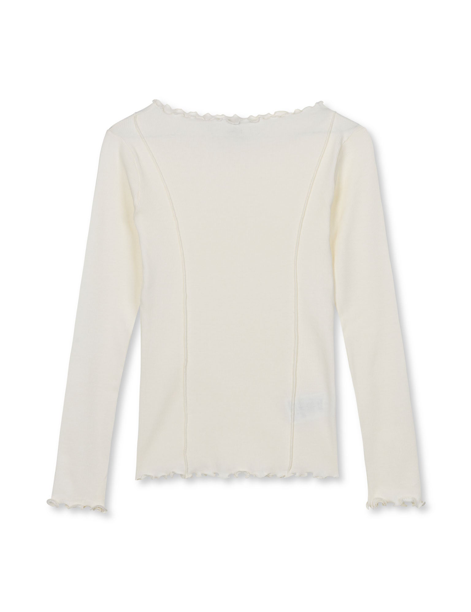 Fitted and stretchy long-sleeved T-shirt with a boat neck and lettuce hem.