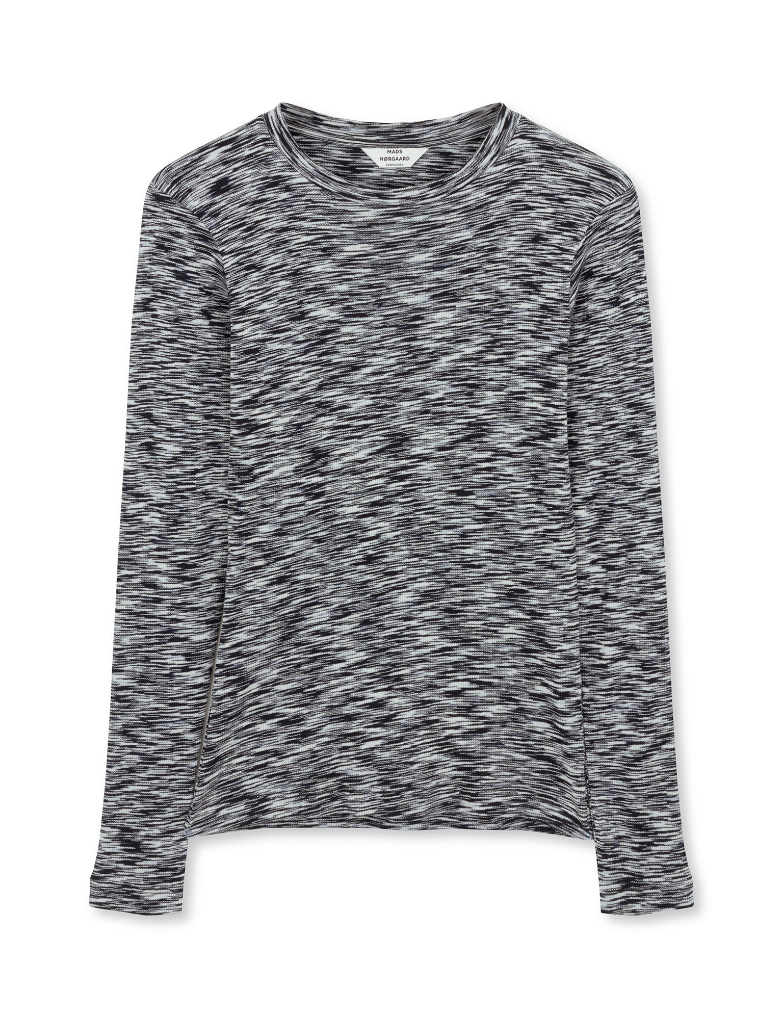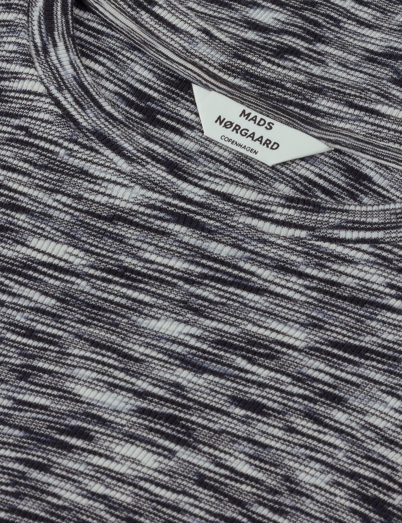 Our long-sleeved T-shirt 2x2 Cotton Space Tuba Tee LS is made of 100 % organic cotton that is rib knitted into super soft and comfortable jersey. The fit is tight, the neck is round and the pattern almost spins around.