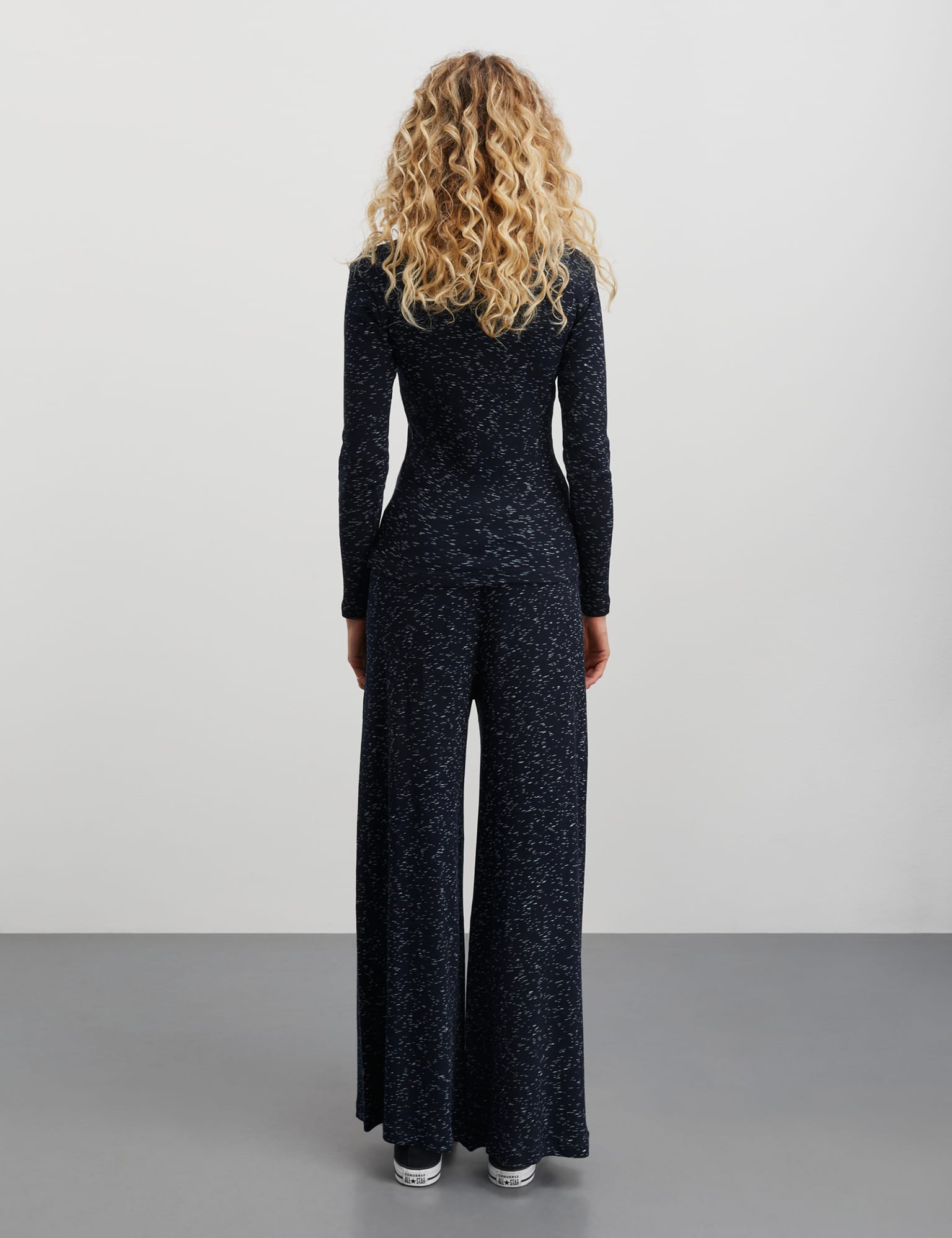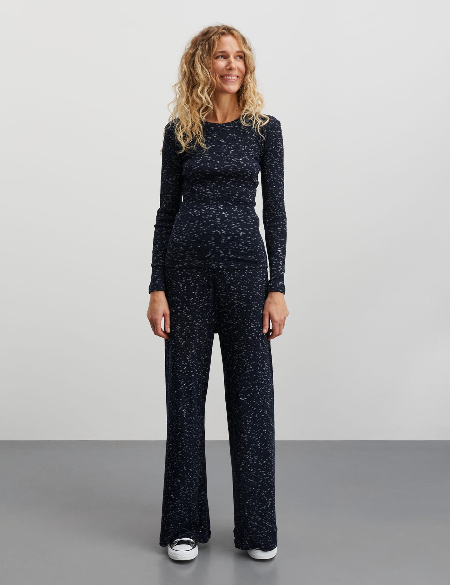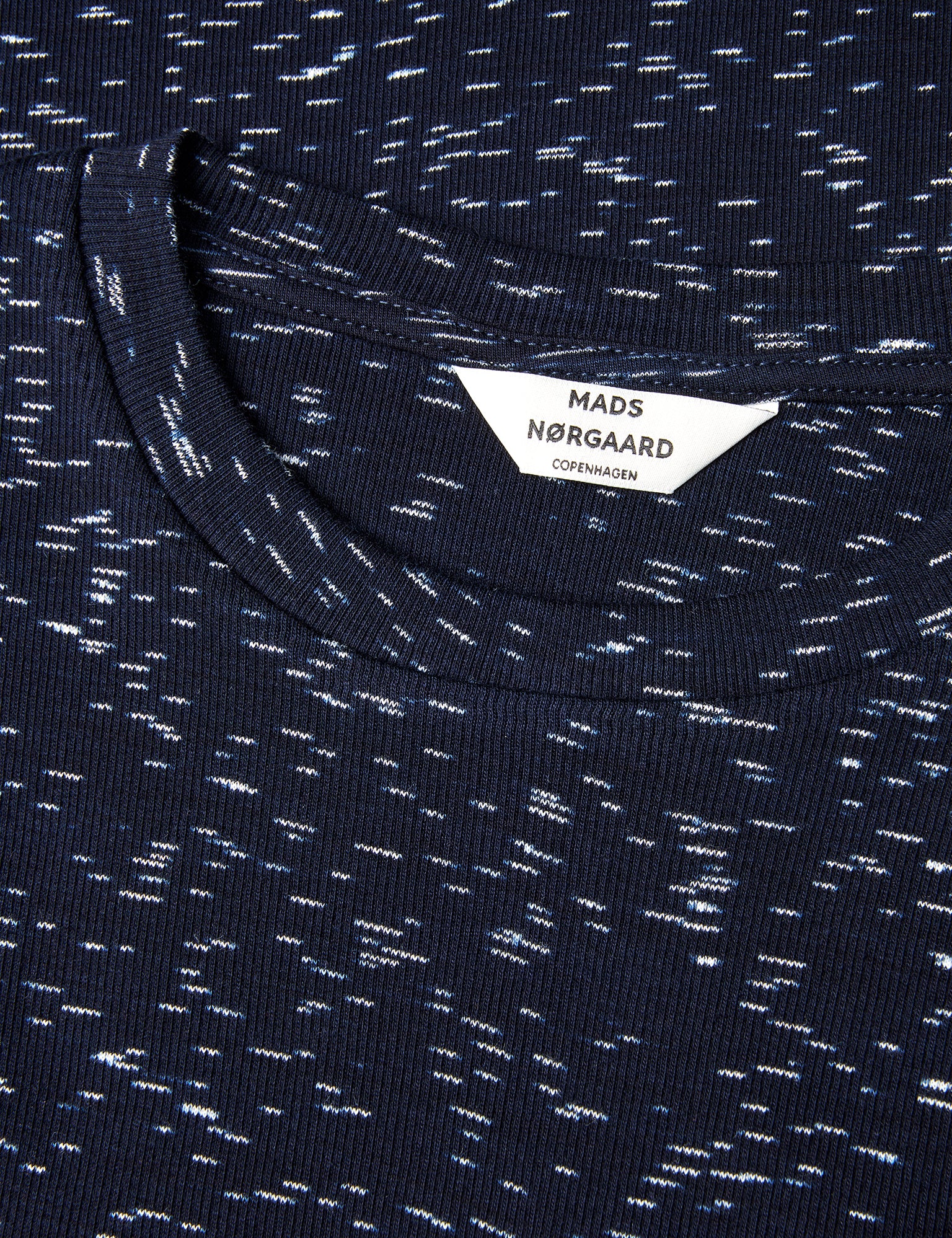 The long-sleeved, organic 2x2 Cotton Space Tuba Tee is rib-knitted and super flexible. It is also tight-fitting and has a round neck.