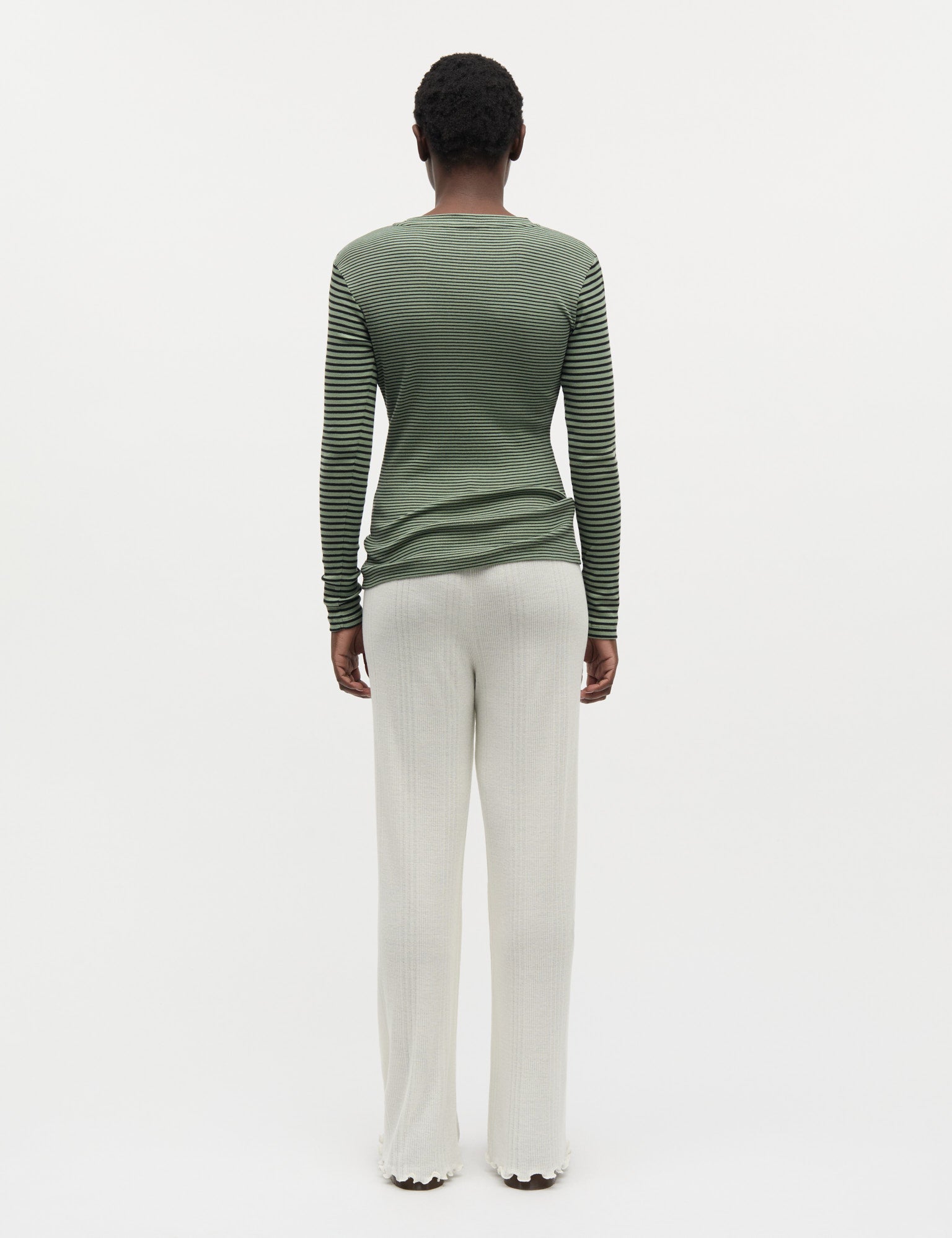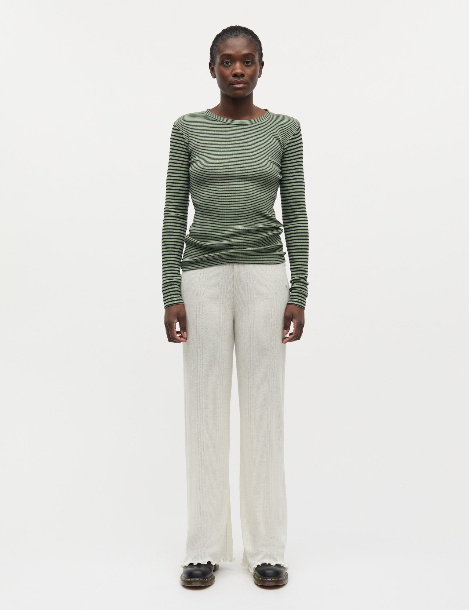 Fitted and stretchy long-sleeved crewneck T-shirt.