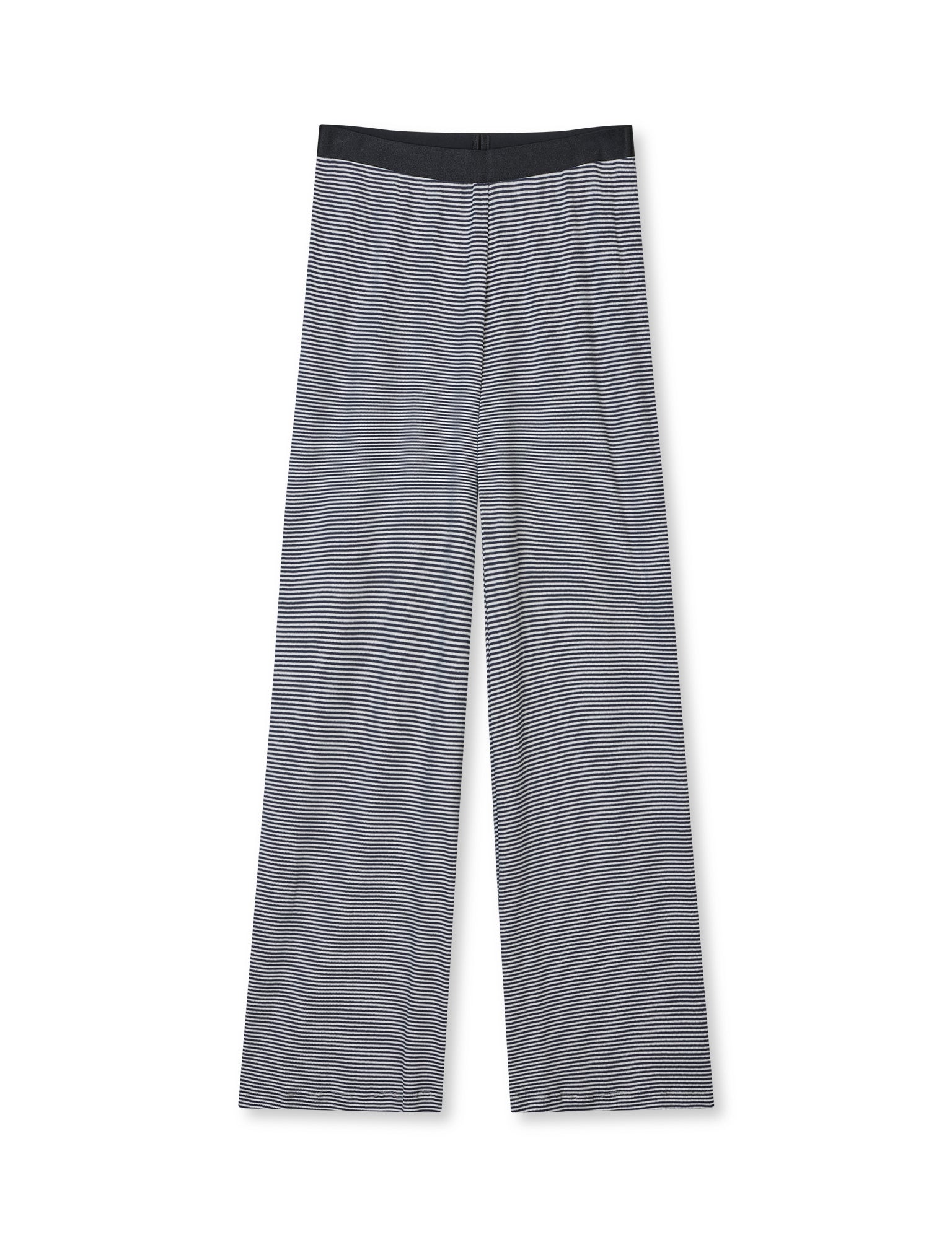 Striped pants in a soft stretchy cotton. The pants have a wide elastic waistband that closes at the waist. The fit is high-waisted with wide legs.