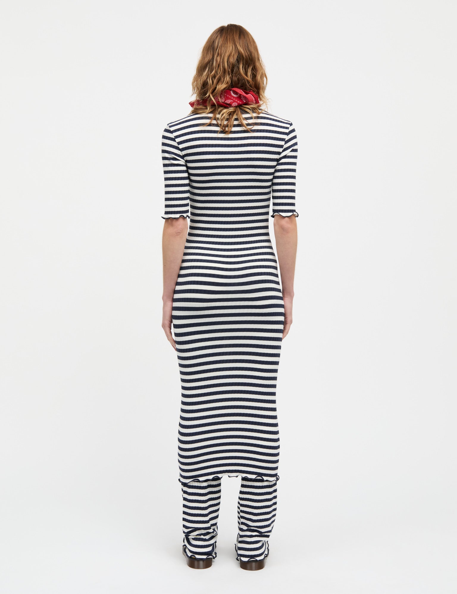 Stretchy and fitted trousers with an elasticated waist and bootcut legs with a lettuce hem.