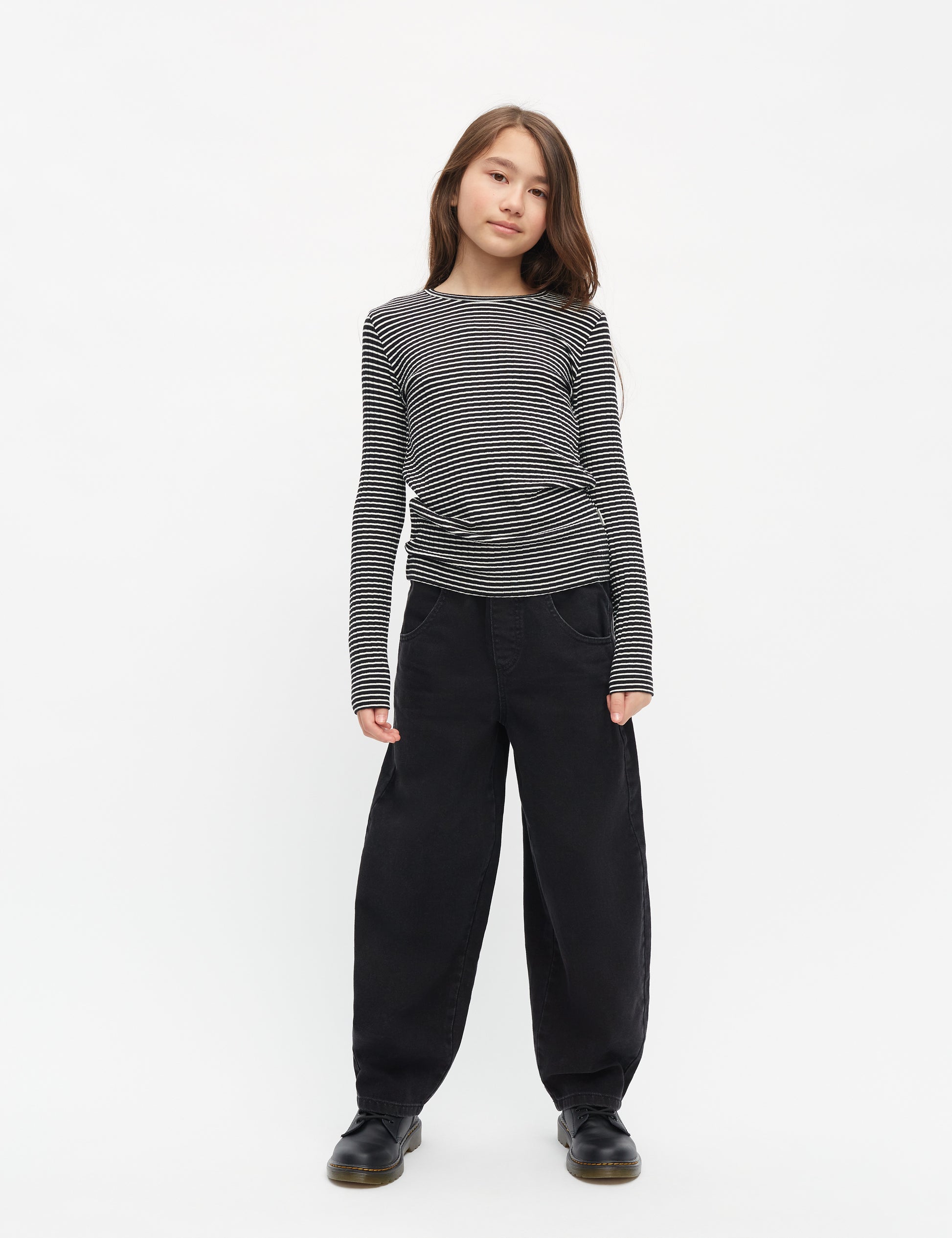 Soft, fitted and stretchy long-sleeved T-shirt with a round neck and dropped shoulders.