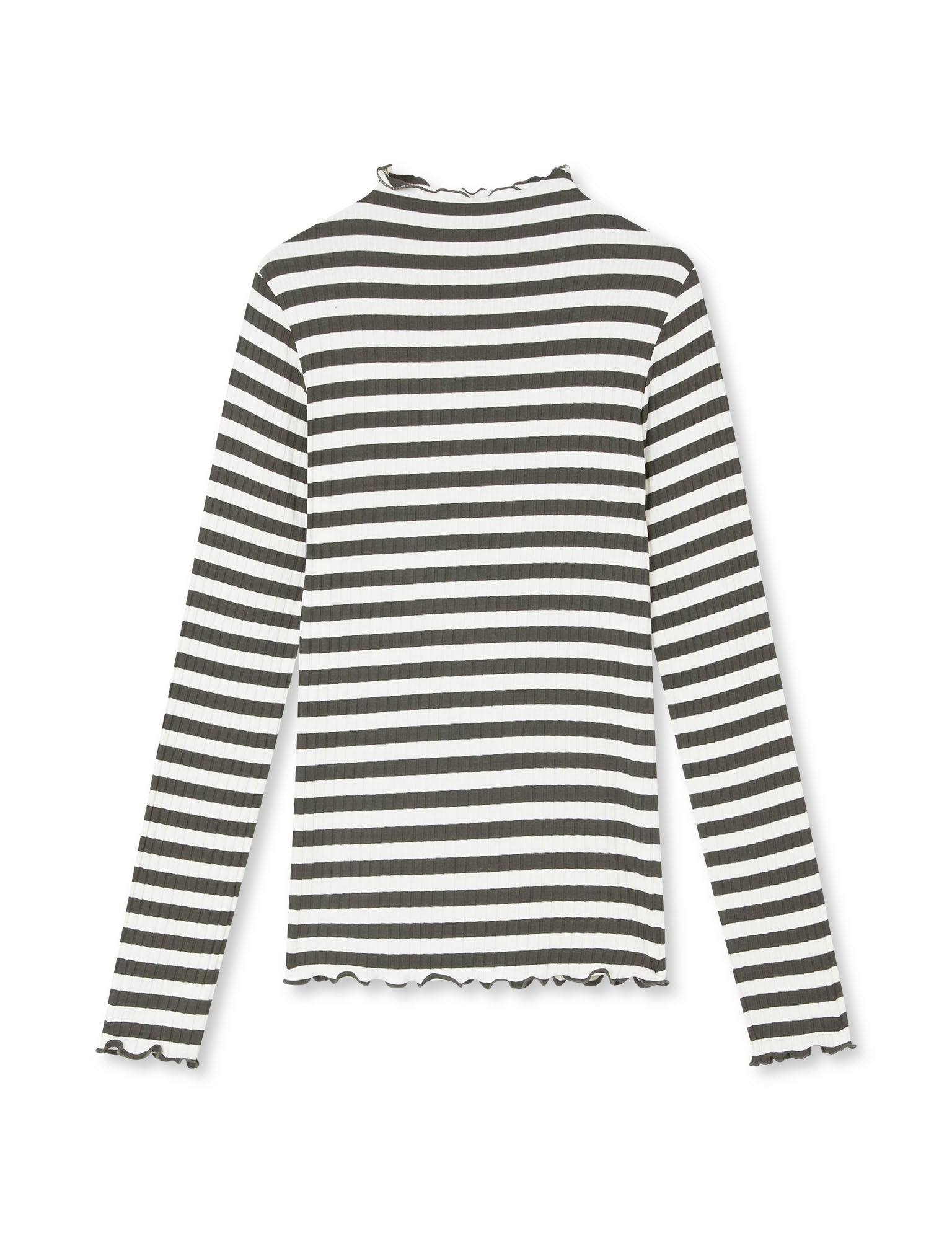 The long-sleeved 5x5 Stripe Trutte Tee LS is rib-knitted and super flexible. It is also tight-fitting with a semi-high neck and curled hem.