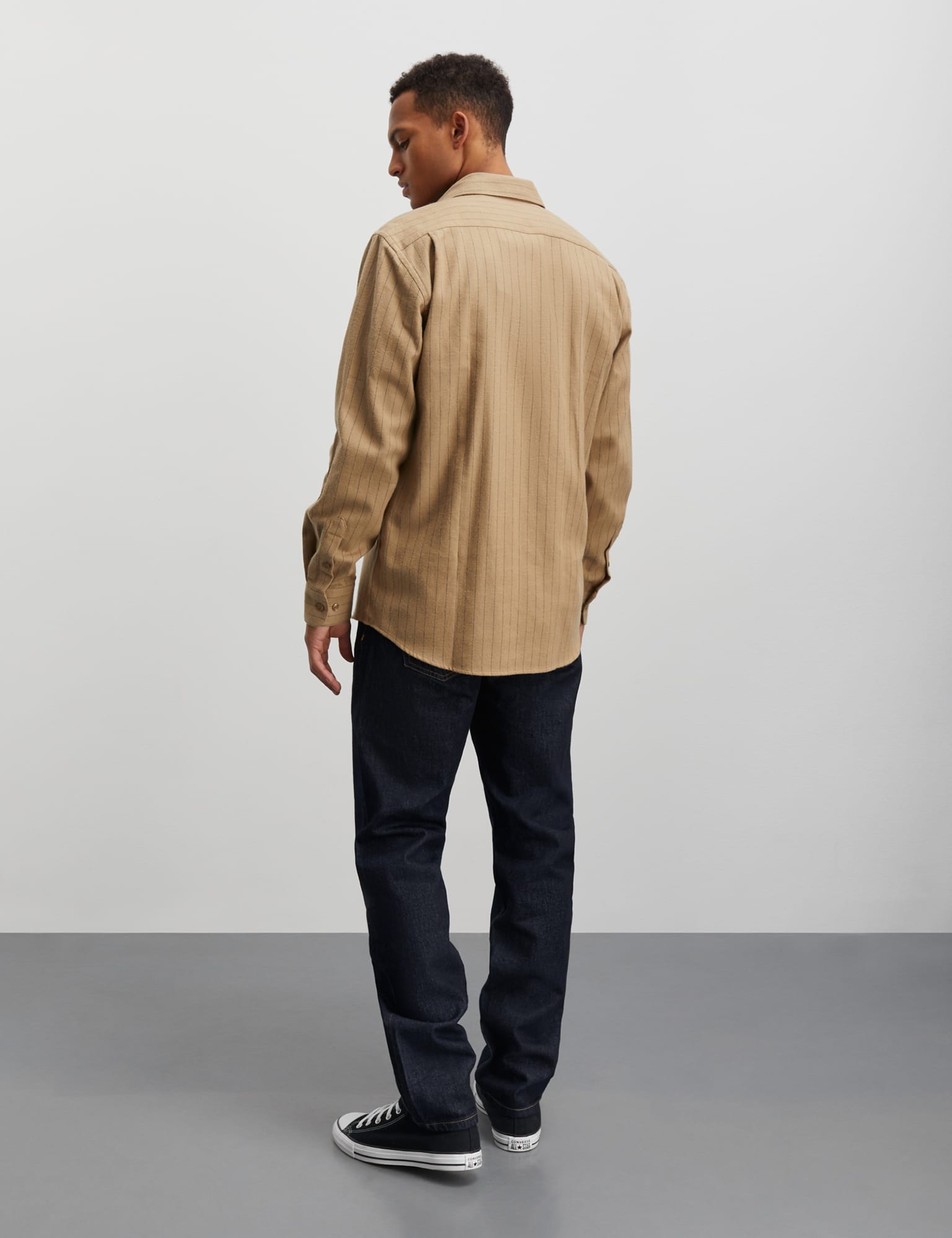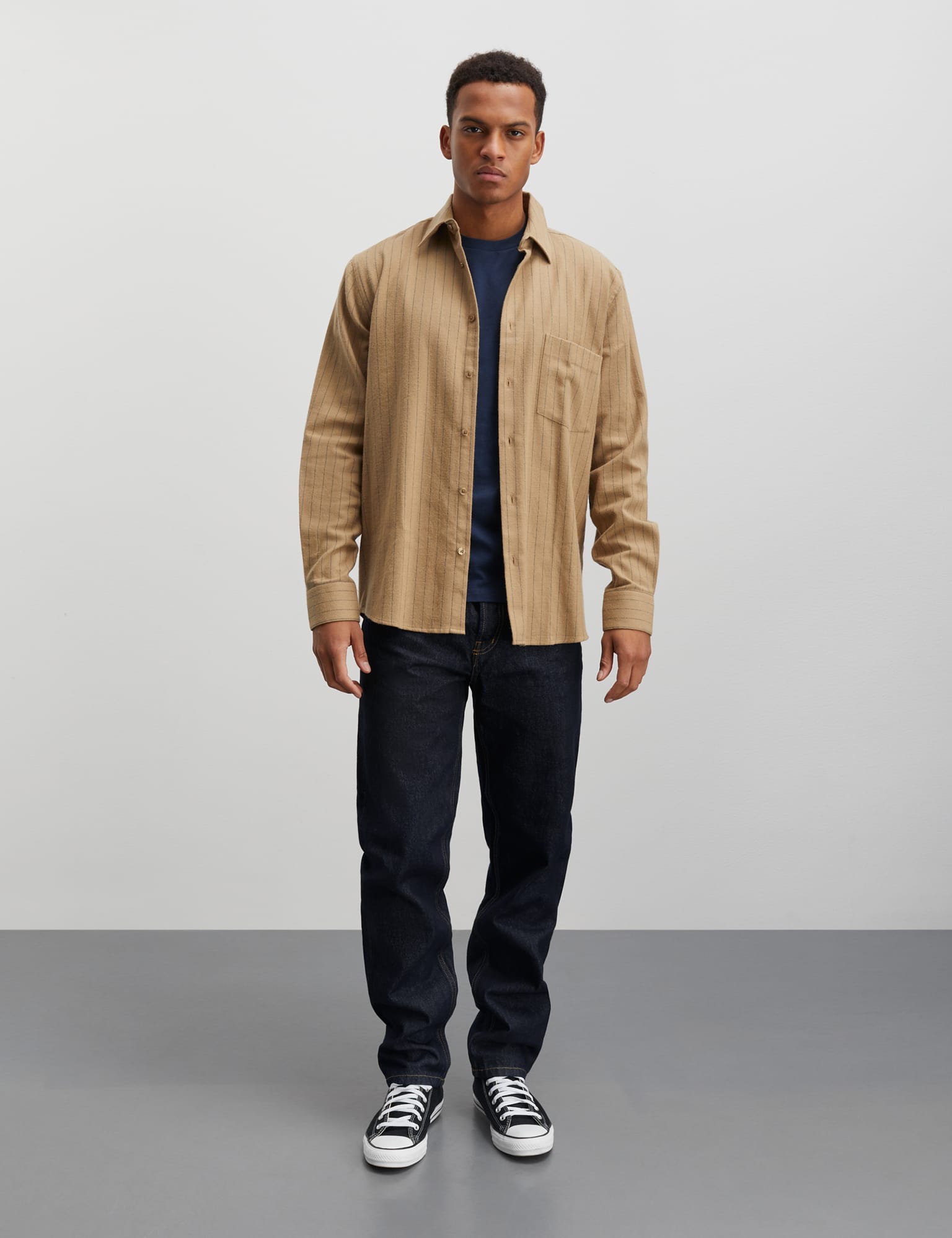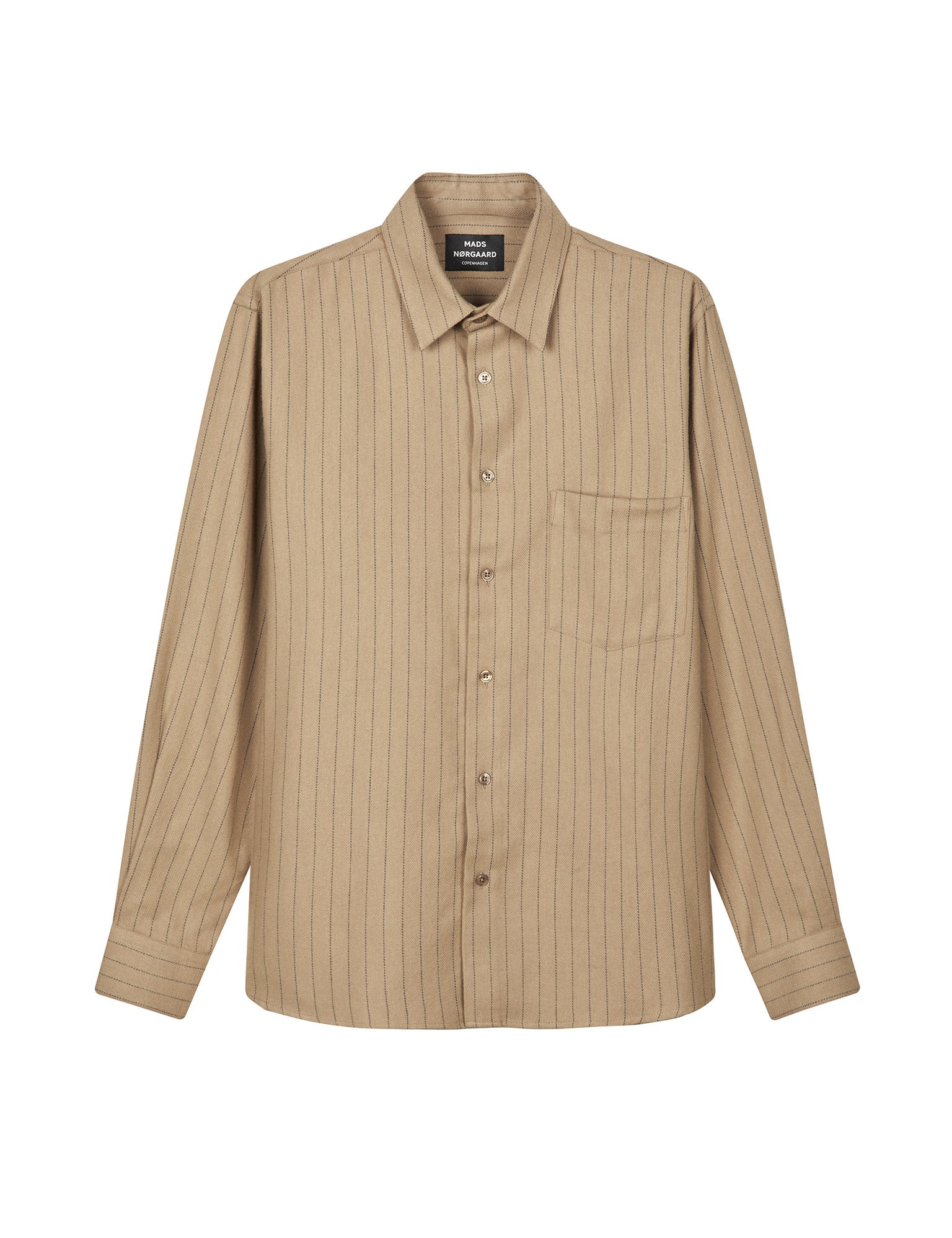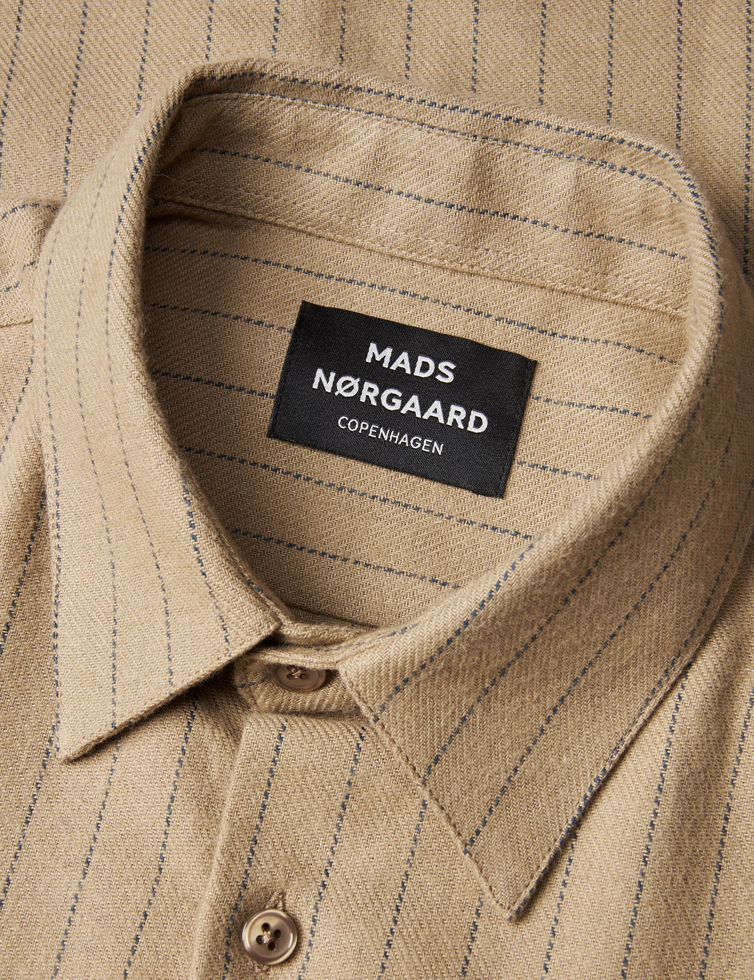 Alaska Flannel Stripe Sune is a cotton shirt with pinstripes. The fit is regular with a single breast pocket and standard collar.