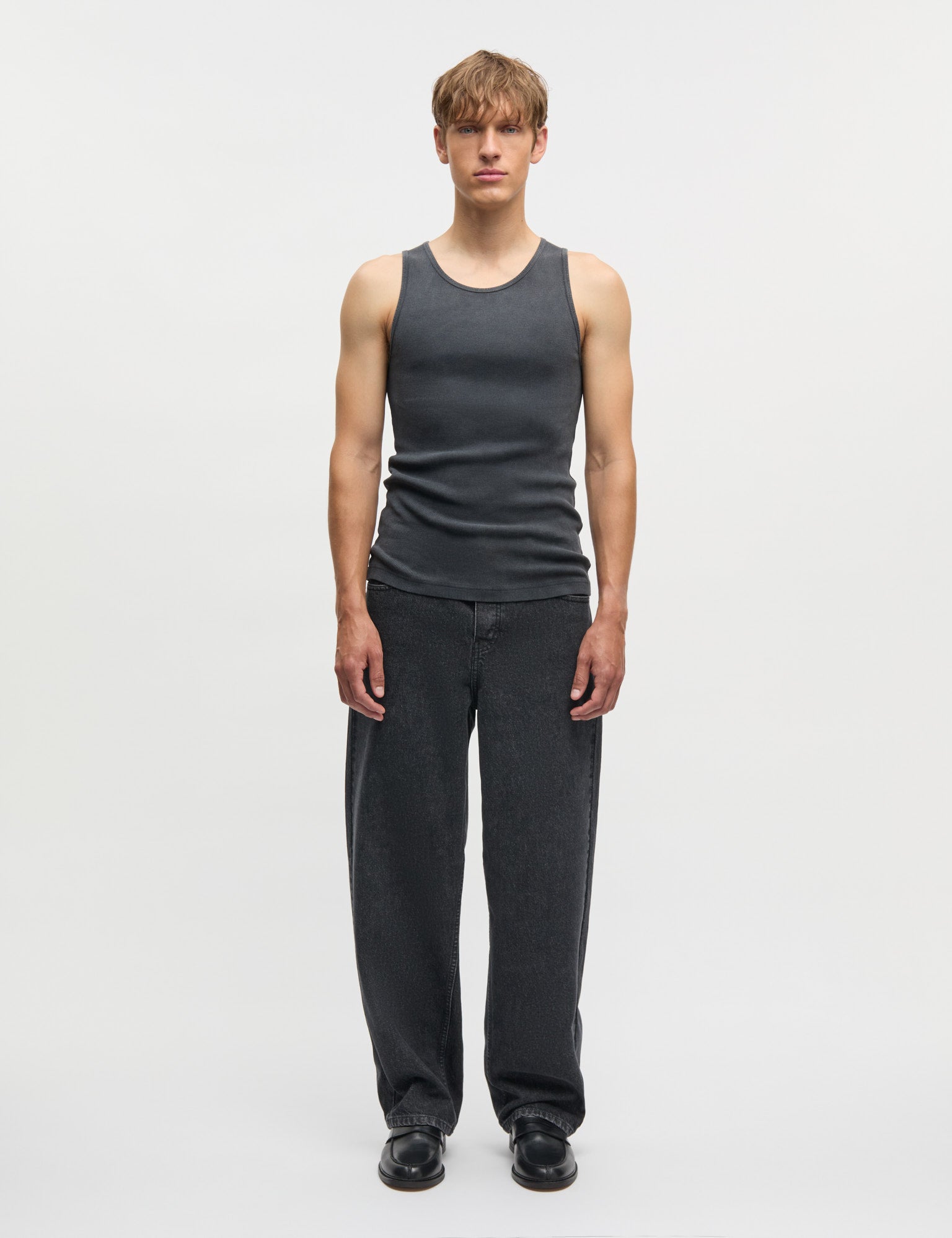 Loose-fitting denim jeans in a straight cut with belt loops at the waist and five pockets.