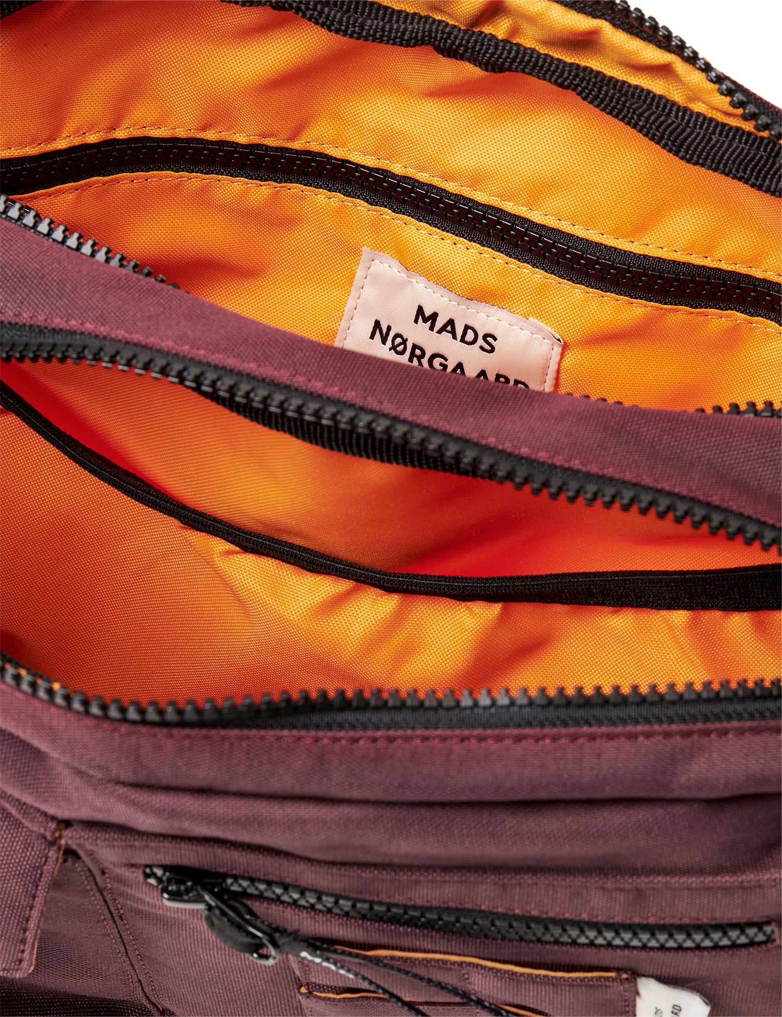 Our Bel One Cappa Bag FAV is made of 100 % polyester. The bag has a broad, adjustable logo strap and is closed with a zipper. It is divided into to interior compartments that each has its own inner pocket and it has three outside pockets with zipper or press button. The dimensions of the bag are: H x 20 cm x B x 30 cm