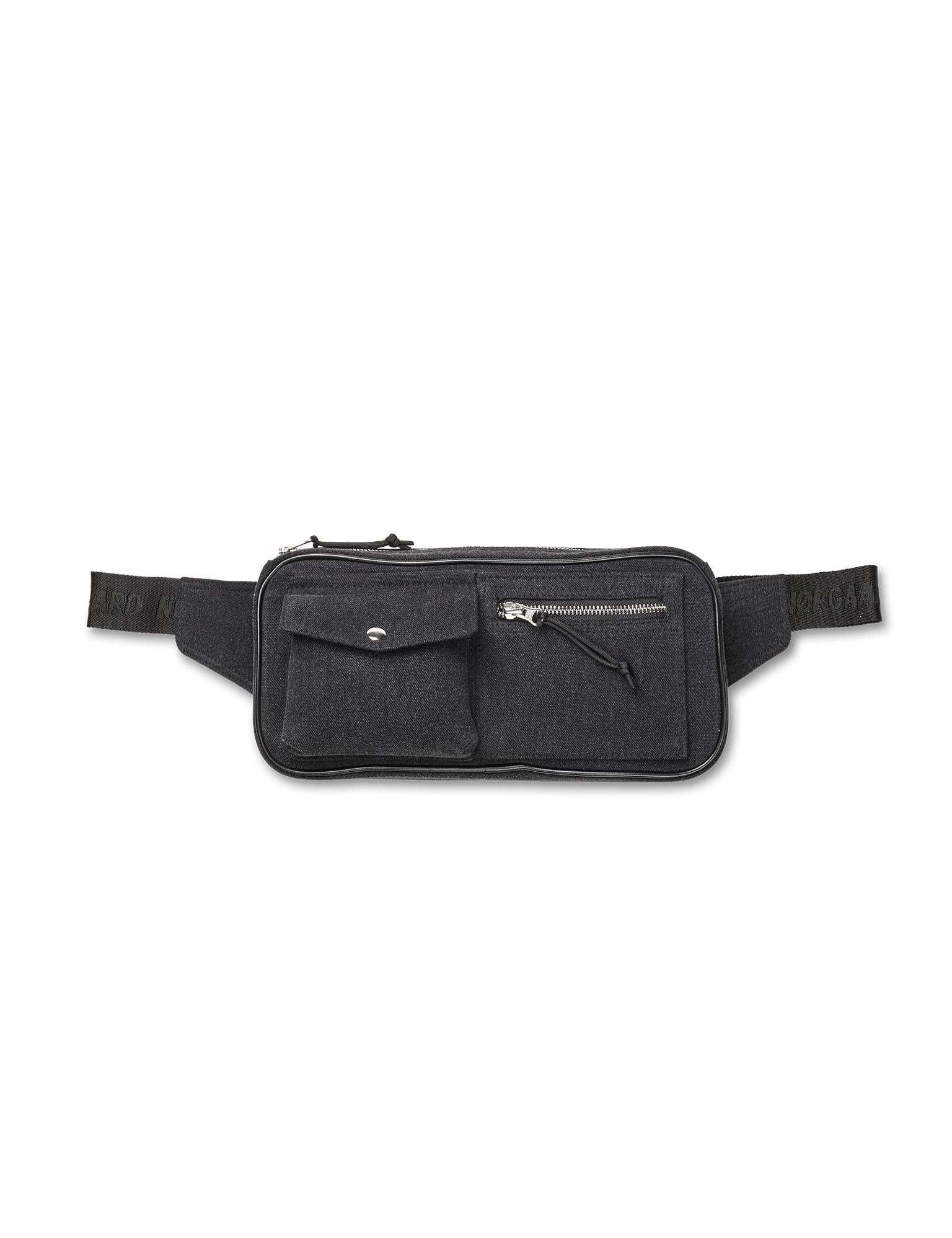 Bumbag with a wide, adjustable strap with a click buckle, zip, one inner pocket and two external pockets.