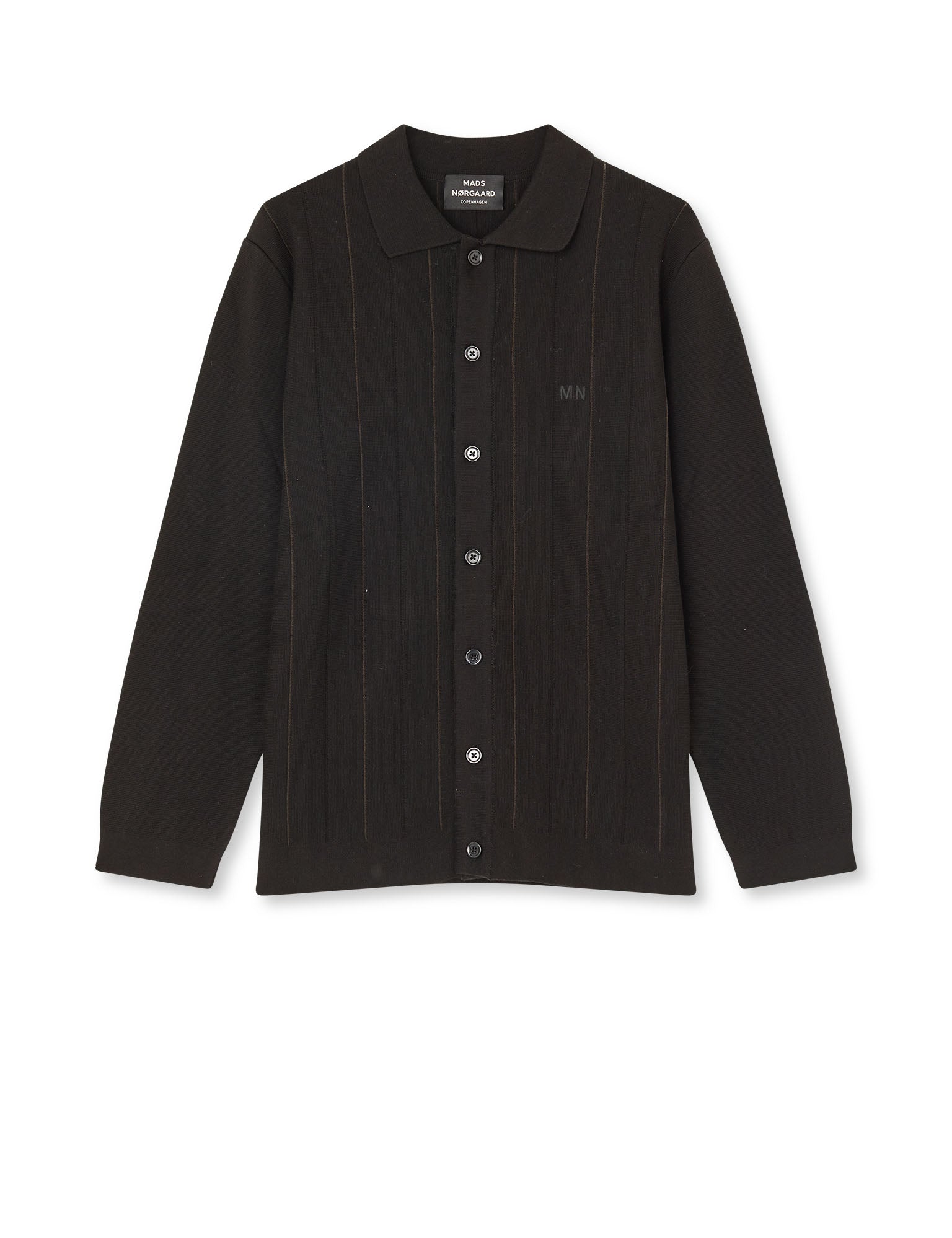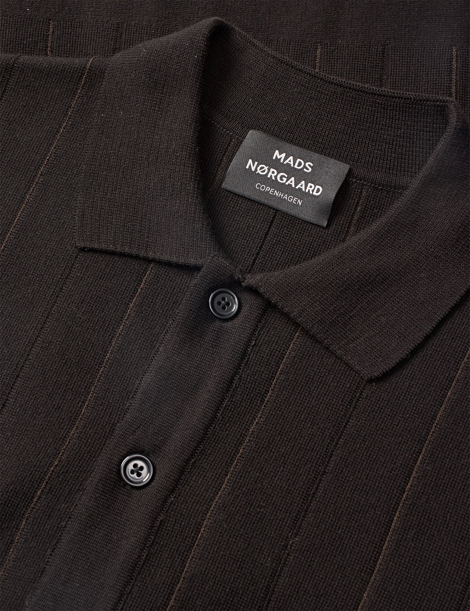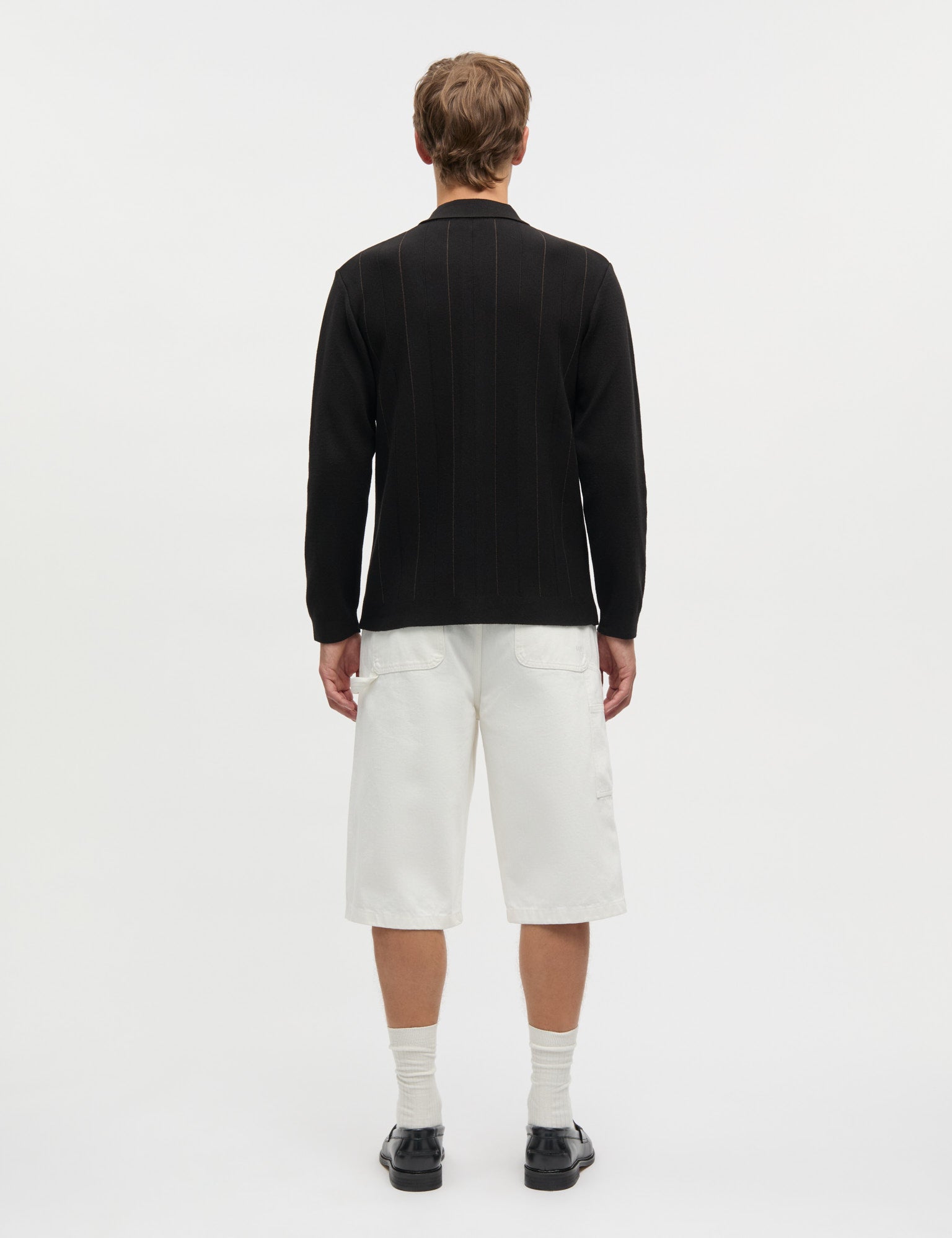 Long-sleeved knitted polo shirt with collar and buttons. Straight fit and vertical textured stripes.