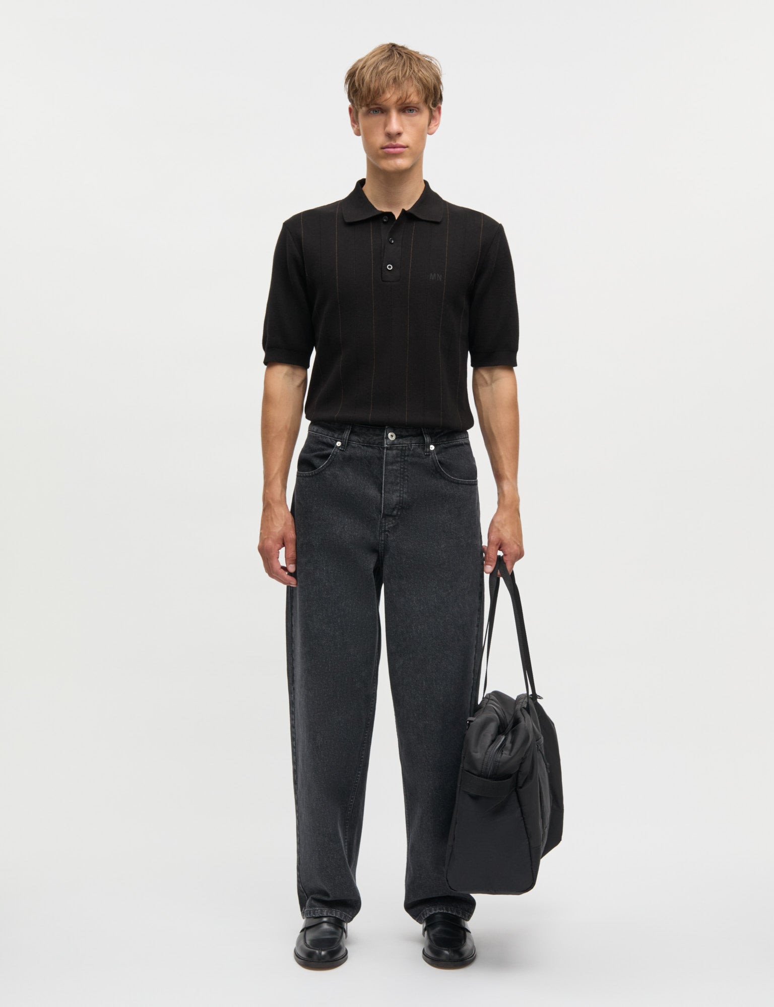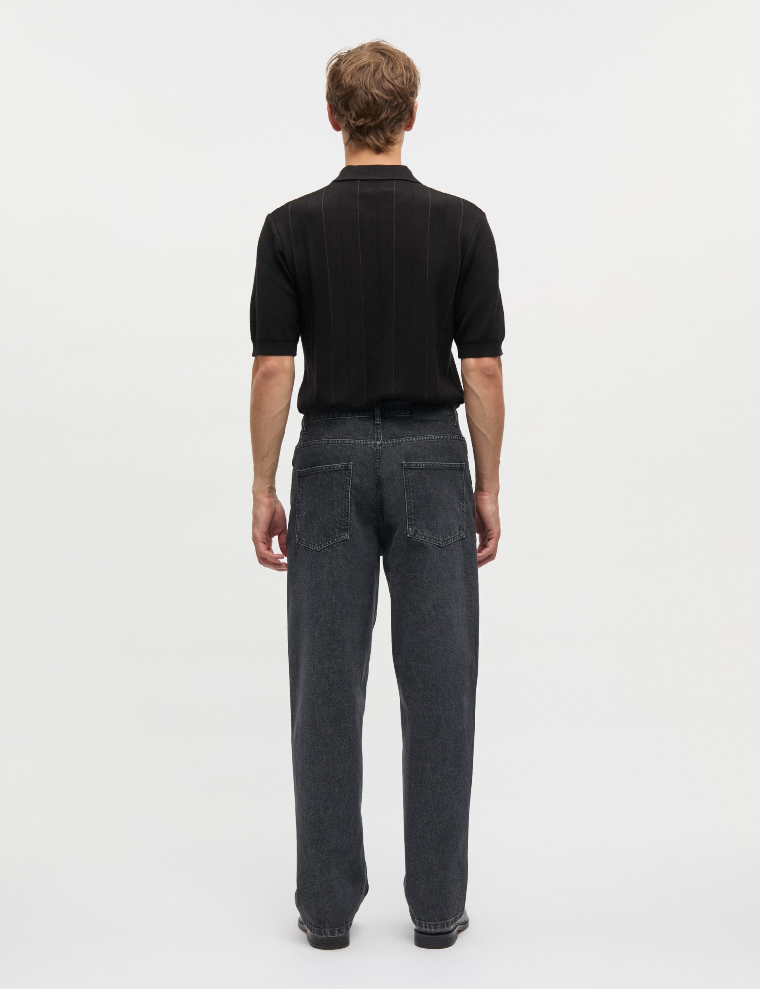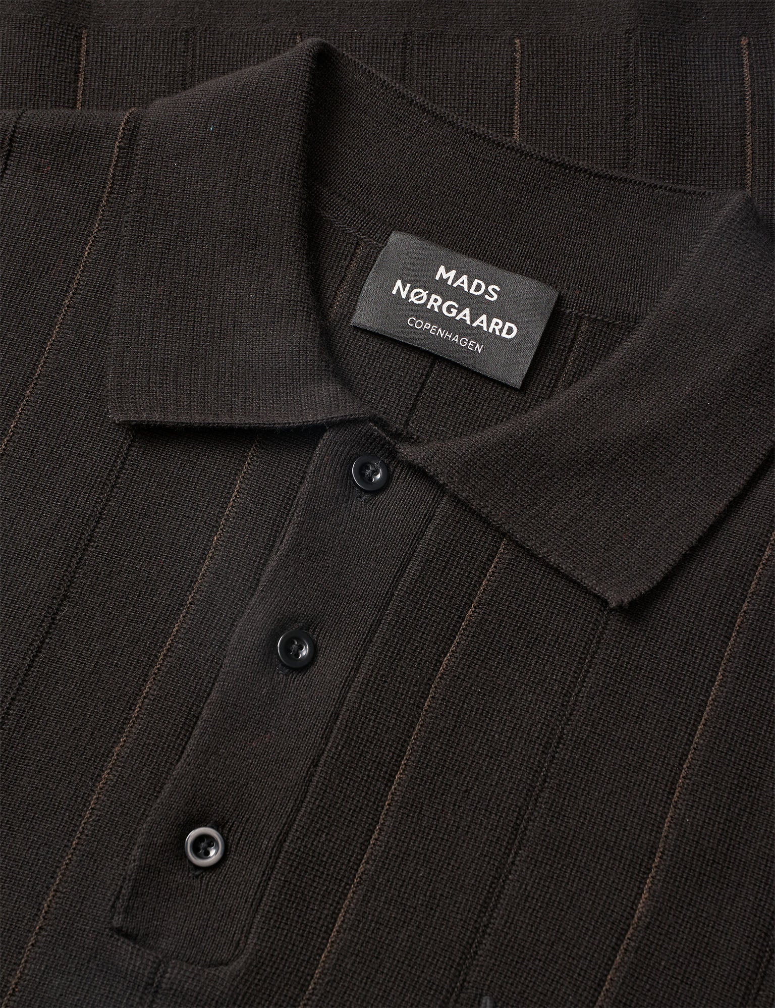 Short-sleeved knitted polo shirt with collar and buttons. Straight fit and vertical textured stripes.
