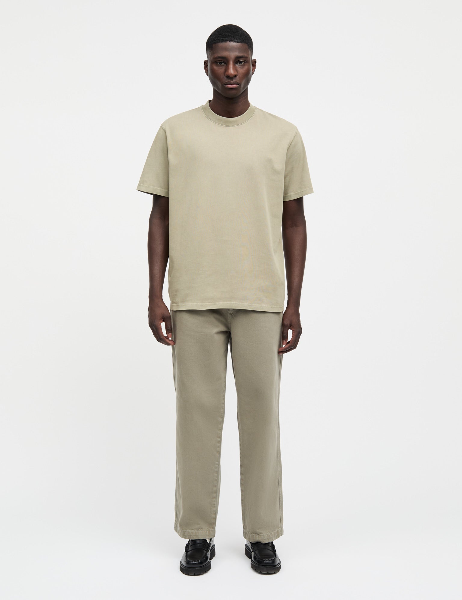 Thick, boxy T-shirt with short sleeves, round neck and small initial-logo embroidered on the hip.