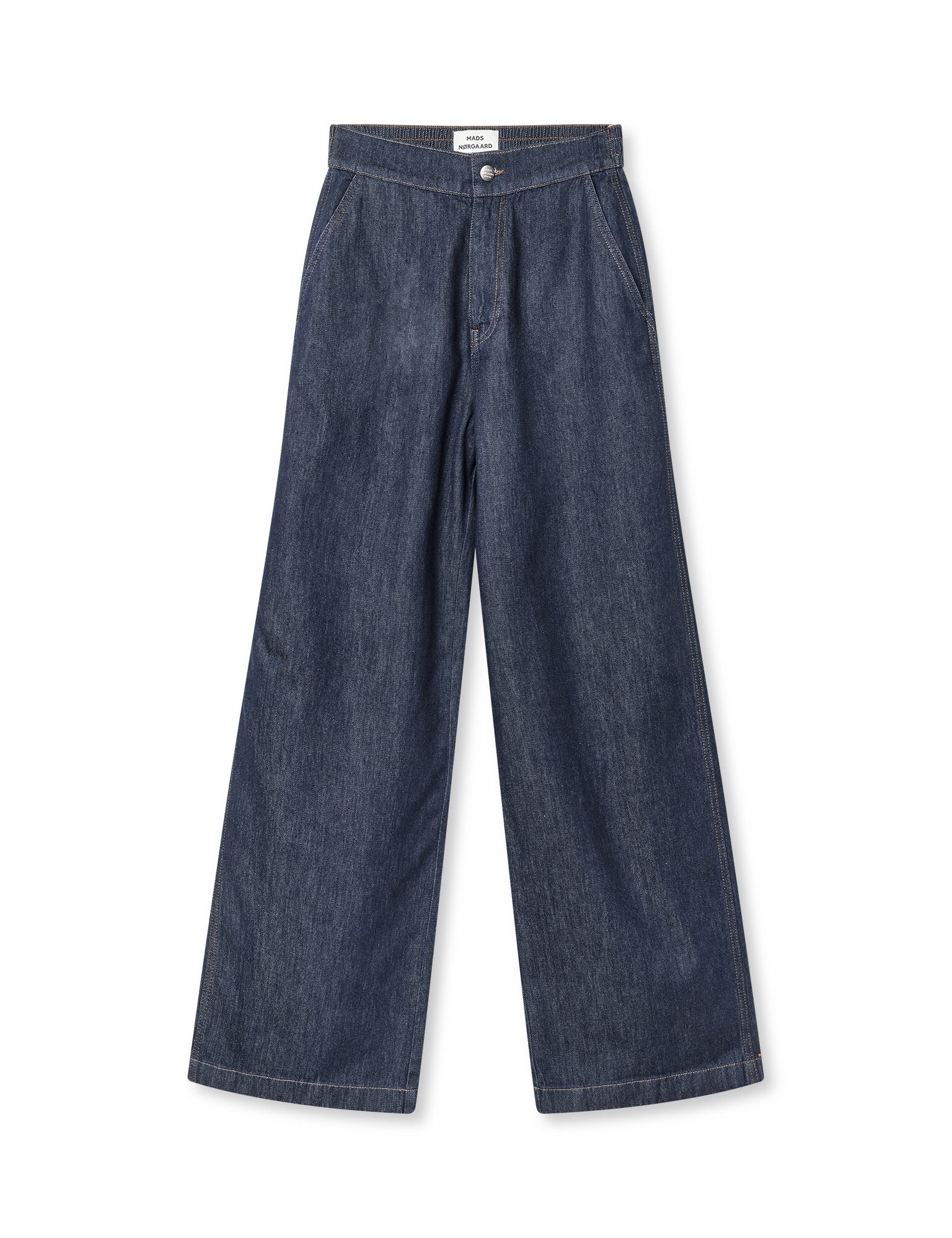 These denim pants are made from a lightweight soft cotton. The fit is mid-waist with wide legs.