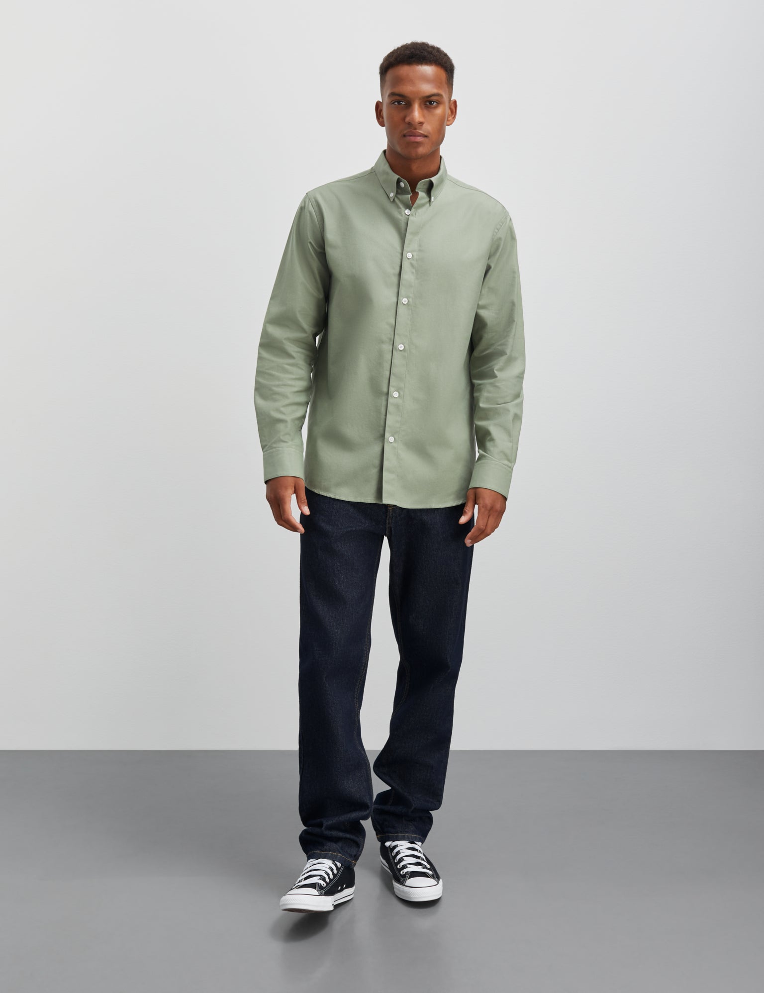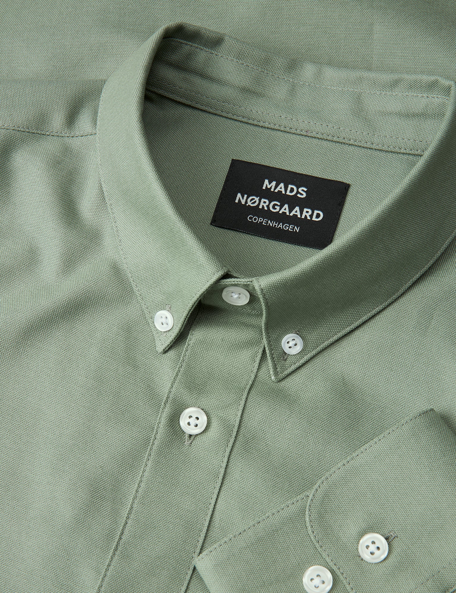 Our shirt Cotton Oxford Sune Shirt is made of 100 % organic cotton. The fit is tight, the collar is a narrow button-down and the shirt has small buttons and cuffs that are adjustable.