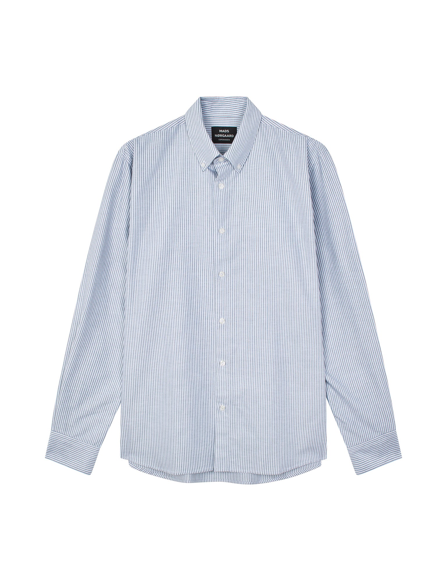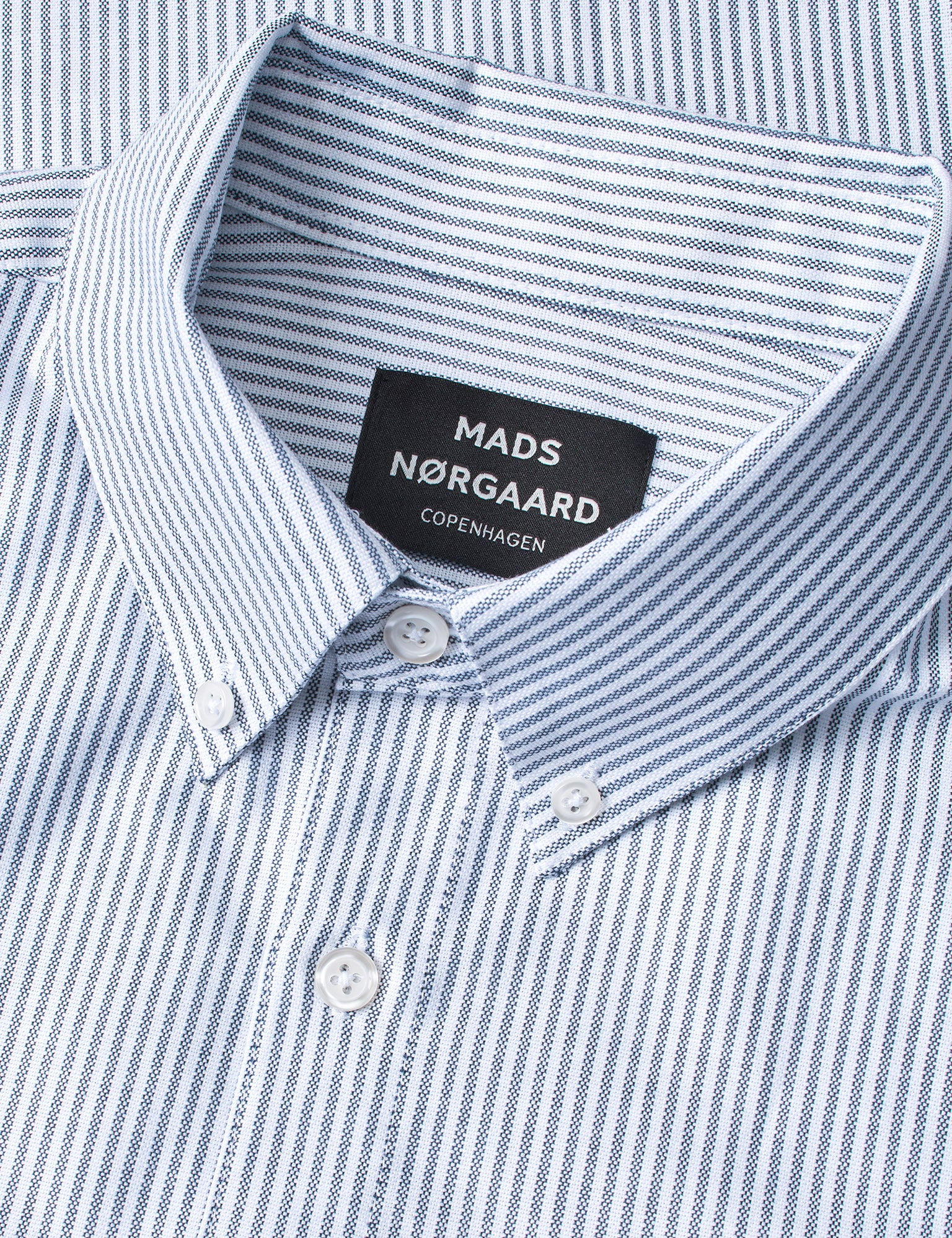 Our Cotton Oxford Sune Stripe shirt is made from cotton. The fit is body-hugging, the collar is narrow and button-down, the buttons are small and the cuffs are adjustable.