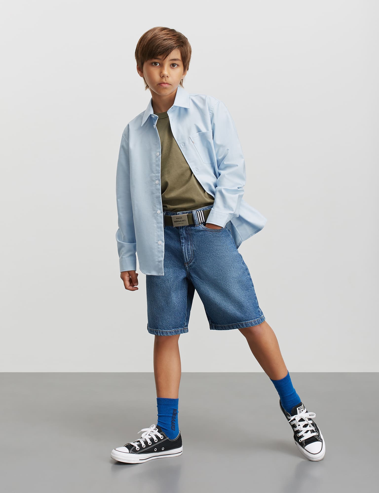 Our shirt Cotton Oxford Svano Shirt is made of 100 % organic cotton that is woven into a crisp cotton fabric. The fit is regular, the collar is turndown and the shirt has to pleats at the shoulders on the back, cuffs and a breast pocket on the front.
