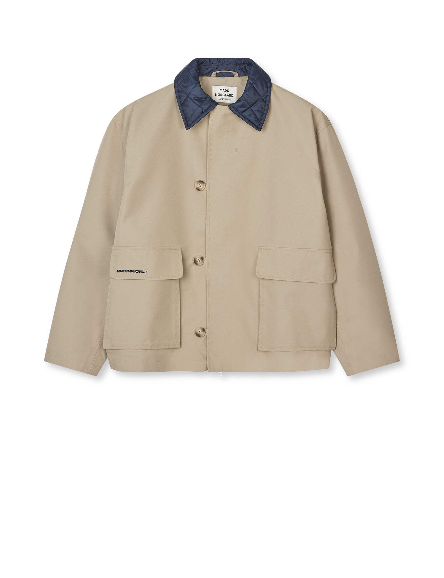 The Cotton Tech Daisy Jacket is super boxy with contrasting quilted collar, asymmetric button closure and large closed pockets.
