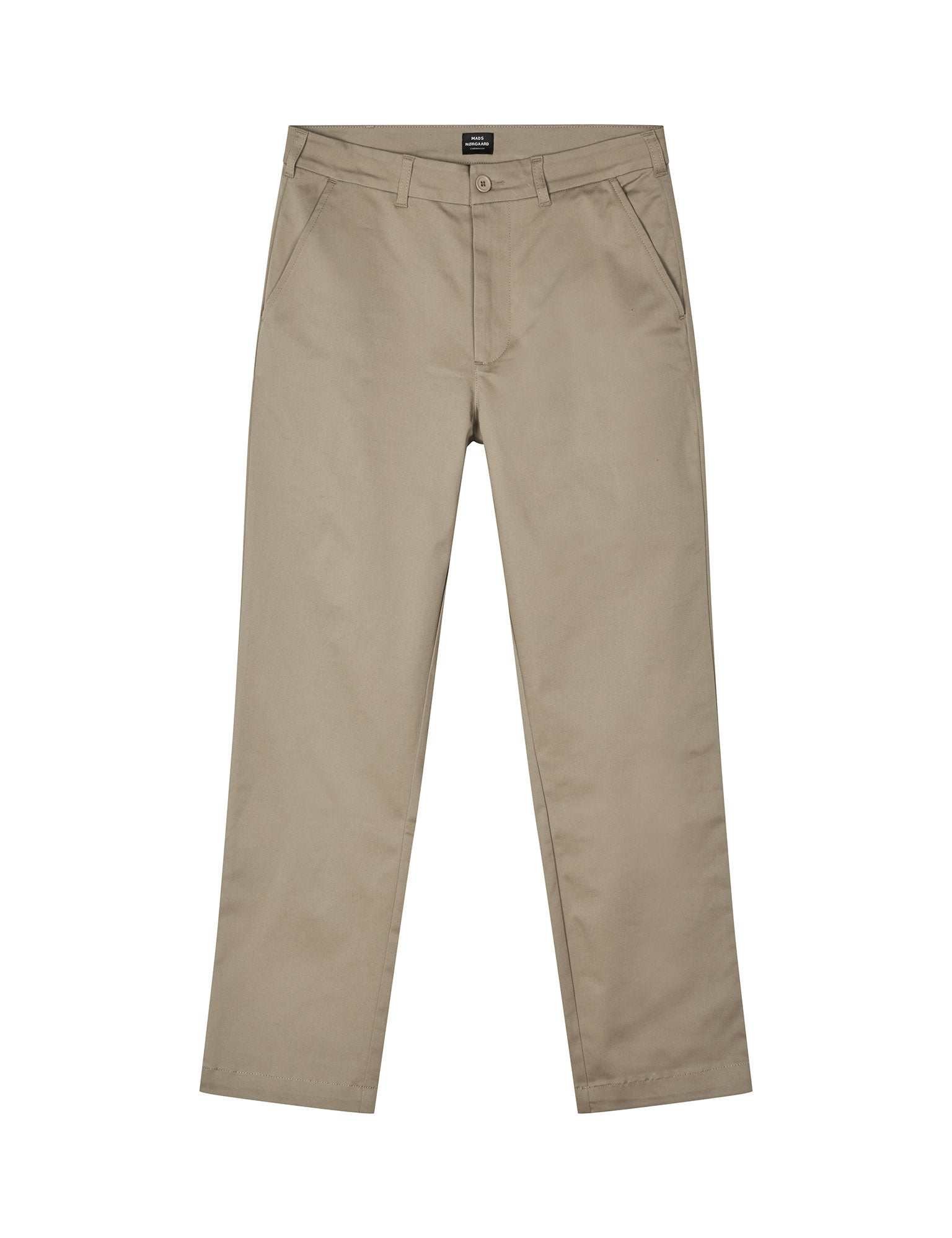 These pants are made of cotton twill with a bit of stretch. The fit is regular, the waistband is fixed with belt loops and the pockets are on opposite sides.