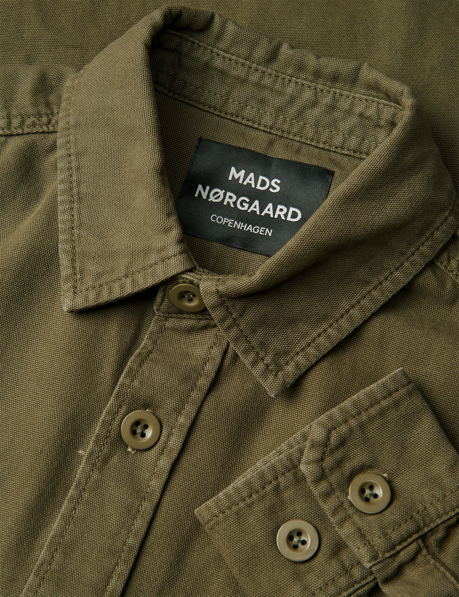 Our long-sleeved shirt Dyed Canvas Skyler Shirt is made of 100 % cotton that is woven into canvas with soft texture. The fit is fitted, the collar is turn-down and it has semi big buttons, big breast pockets and adjustable cuffs.