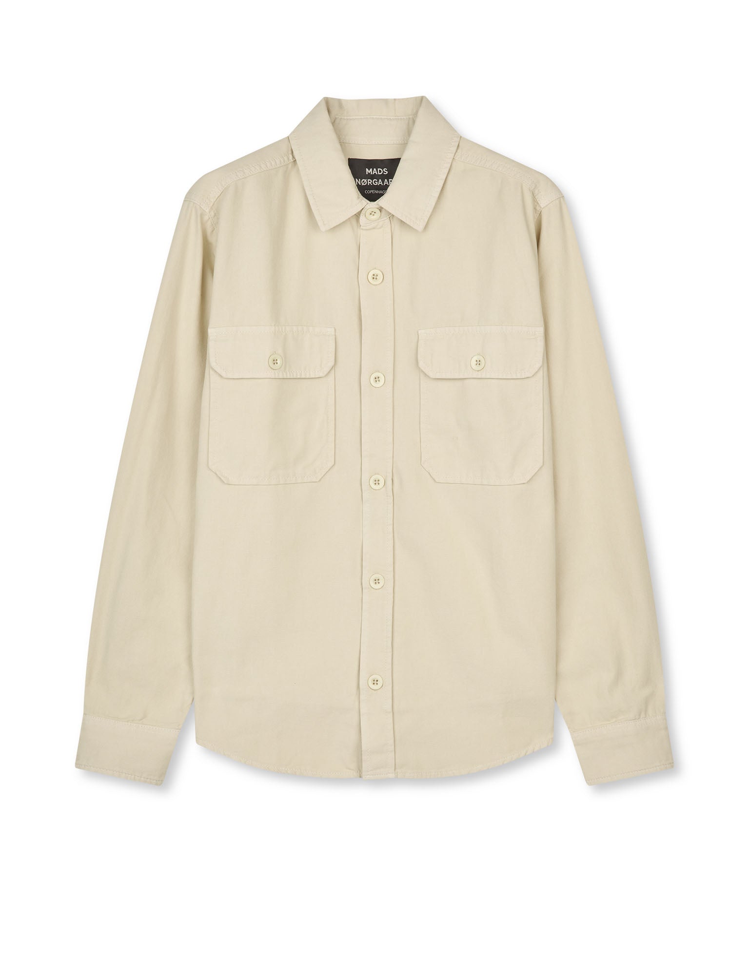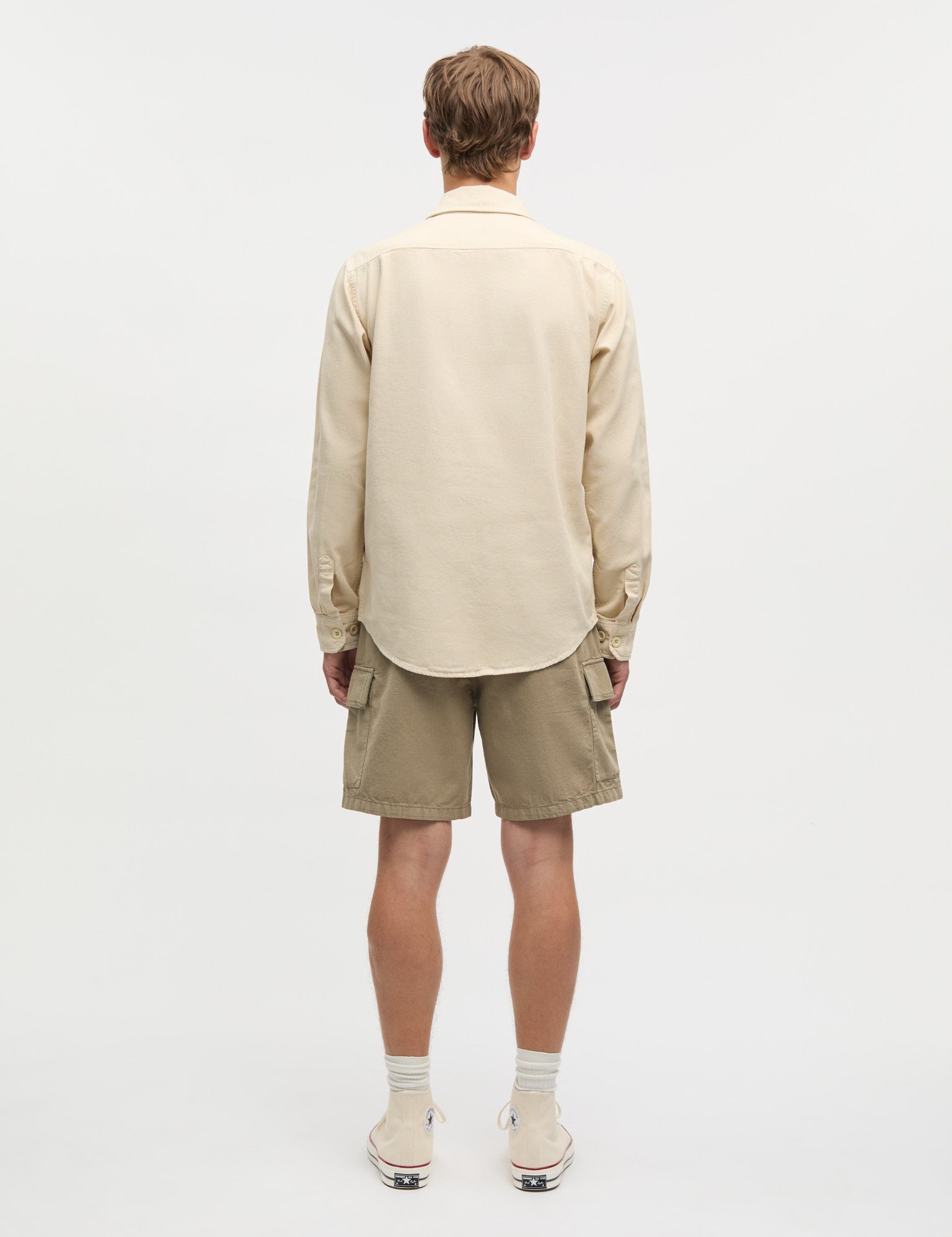 Our long-sleeved shirt Dyed Canvas Skyler Shirt is made of 100 % cotton that is woven into canvas with soft texture. The fit is fitted, the collar is turn-down and it has semi big buttons, big breast pockets and adjustable cuffs.