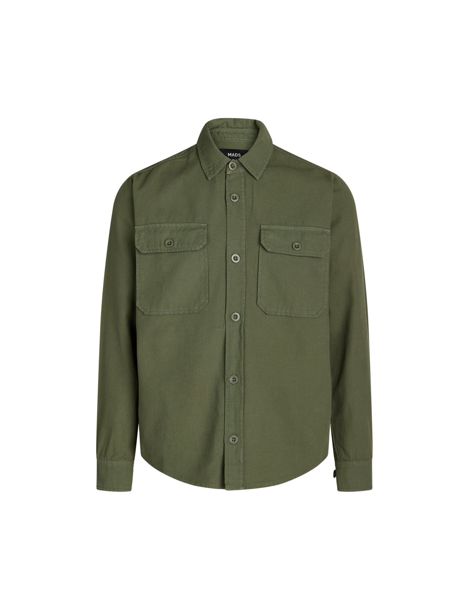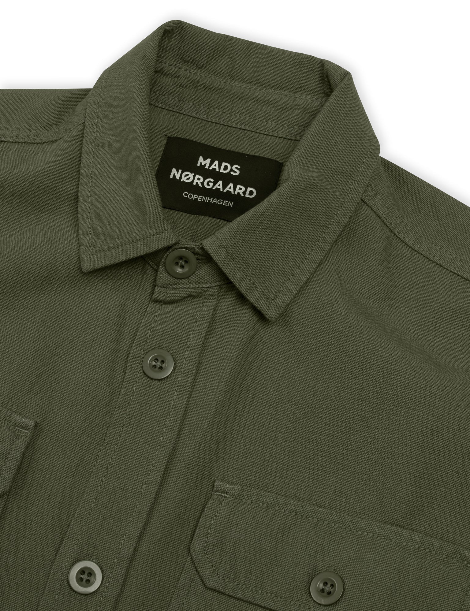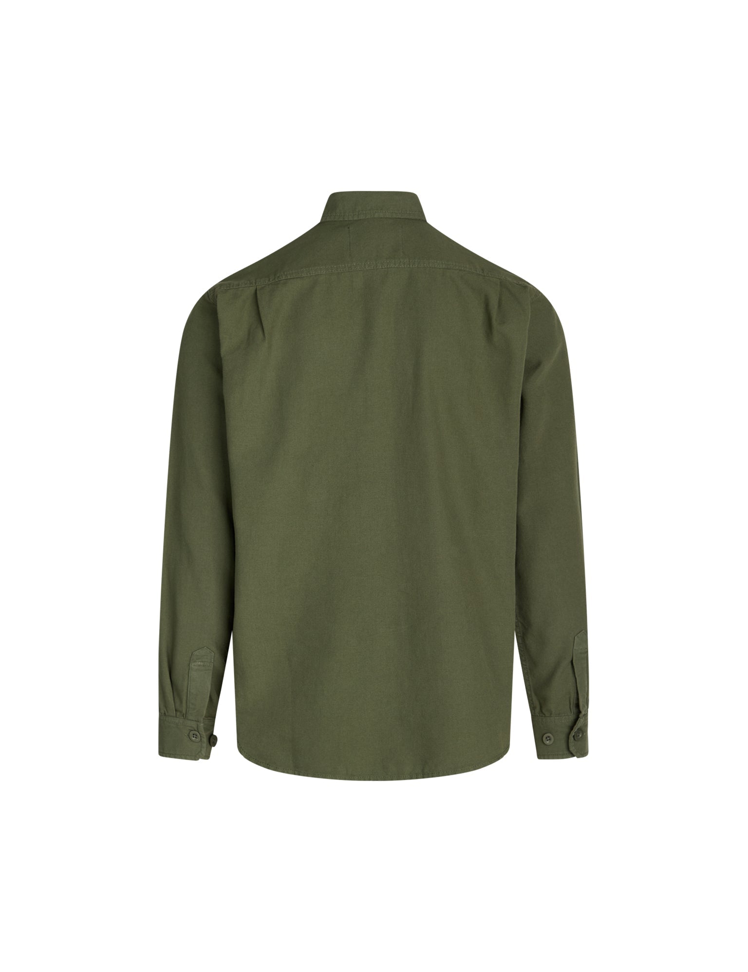 Our long-sleeved shirt Dyed Canvas Skyler Shirt is made of 100 % cotton that is woven into canvas with soft texture. The fit is fitted, the collar is turn-down and it has semi big buttons, big breast pockets and adjustable cuffs.
