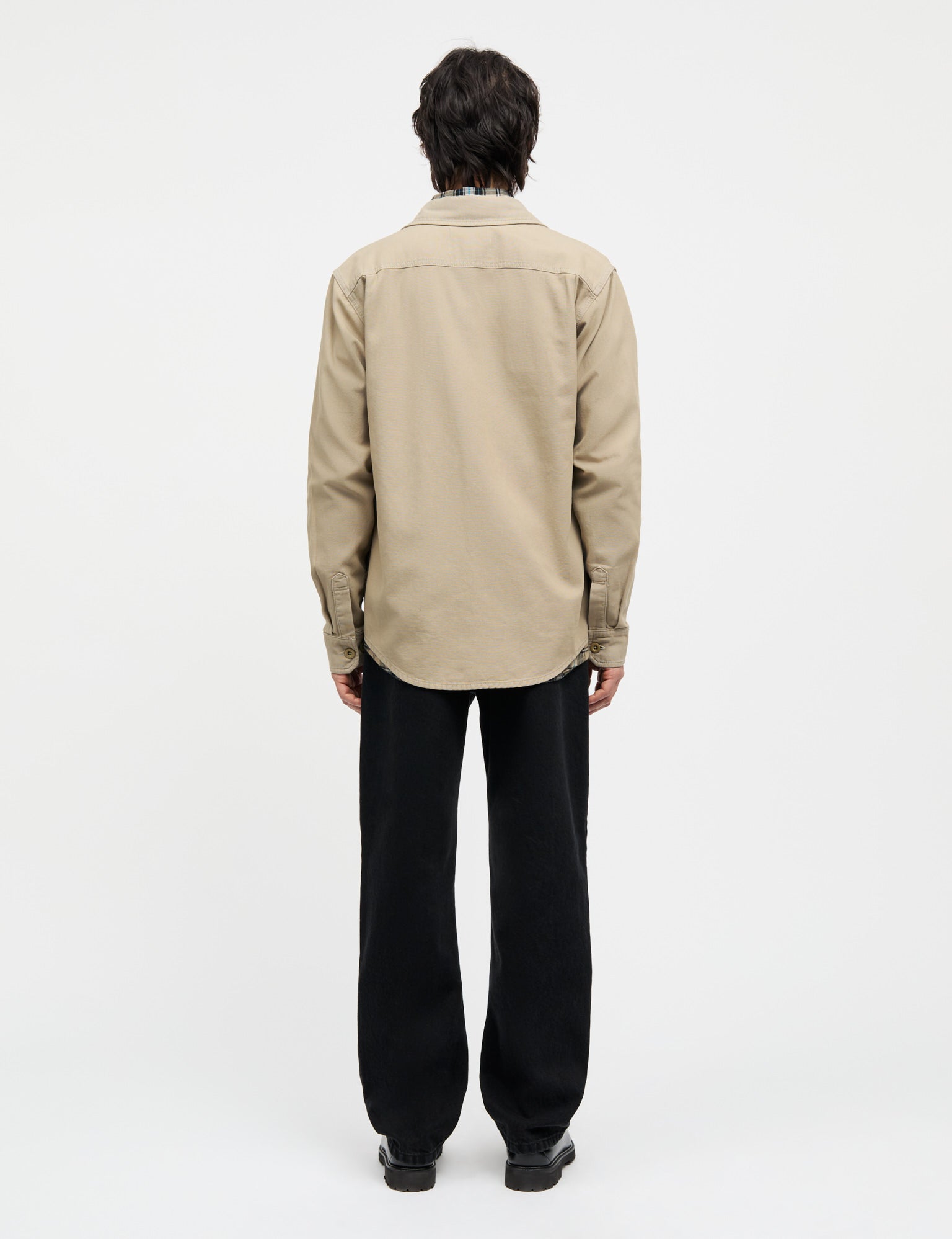 Our long-sleeved shirt Dyed Canvas Skyler Shirt is made of 100 % cotton that is woven into canvas with soft texture. The fit is fitted, the collar is turn-down and it has semi big buttons, big breast pockets and adjustable cuffs.
