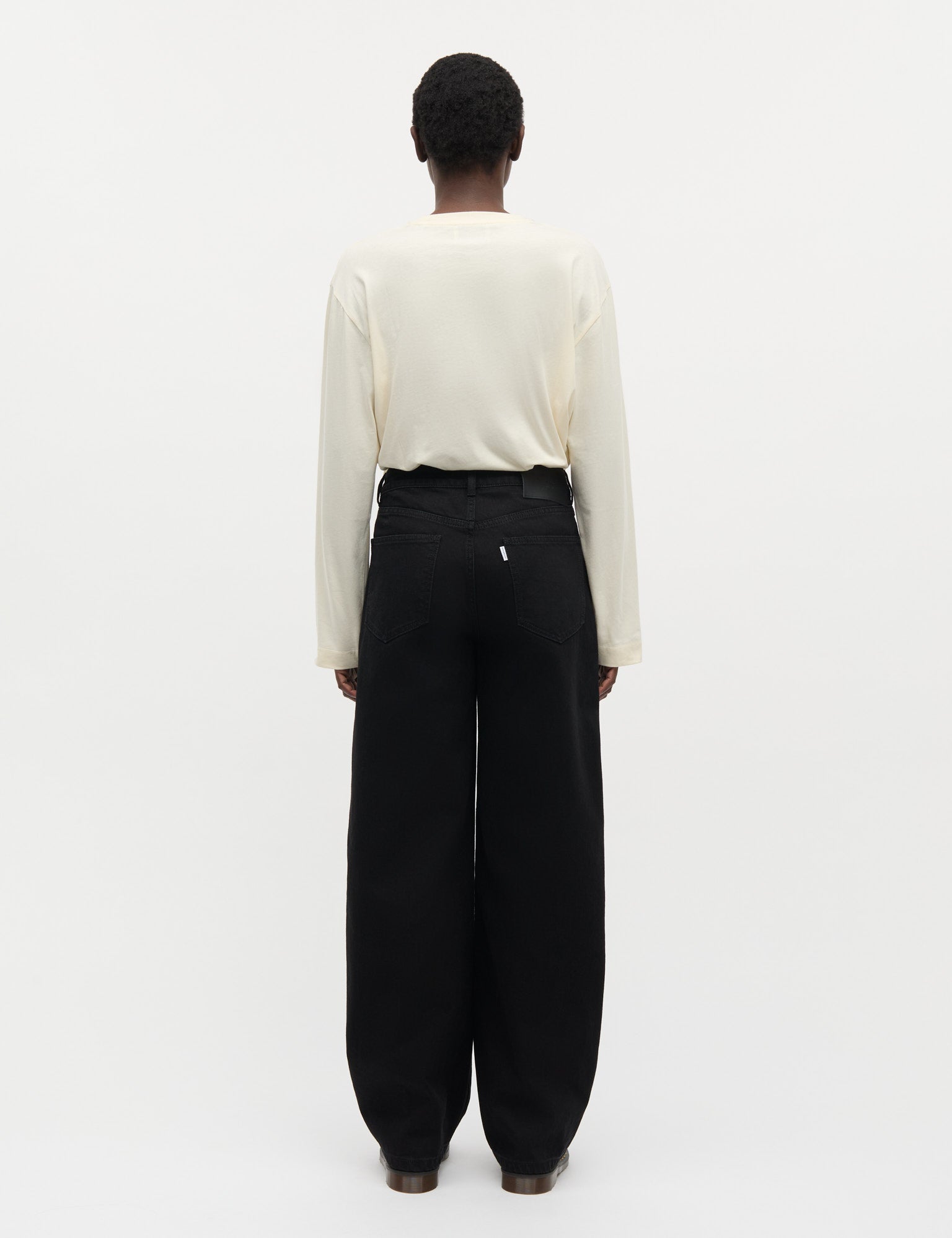 Loose-fitting jeans with wide legs, waistband and five pockets.