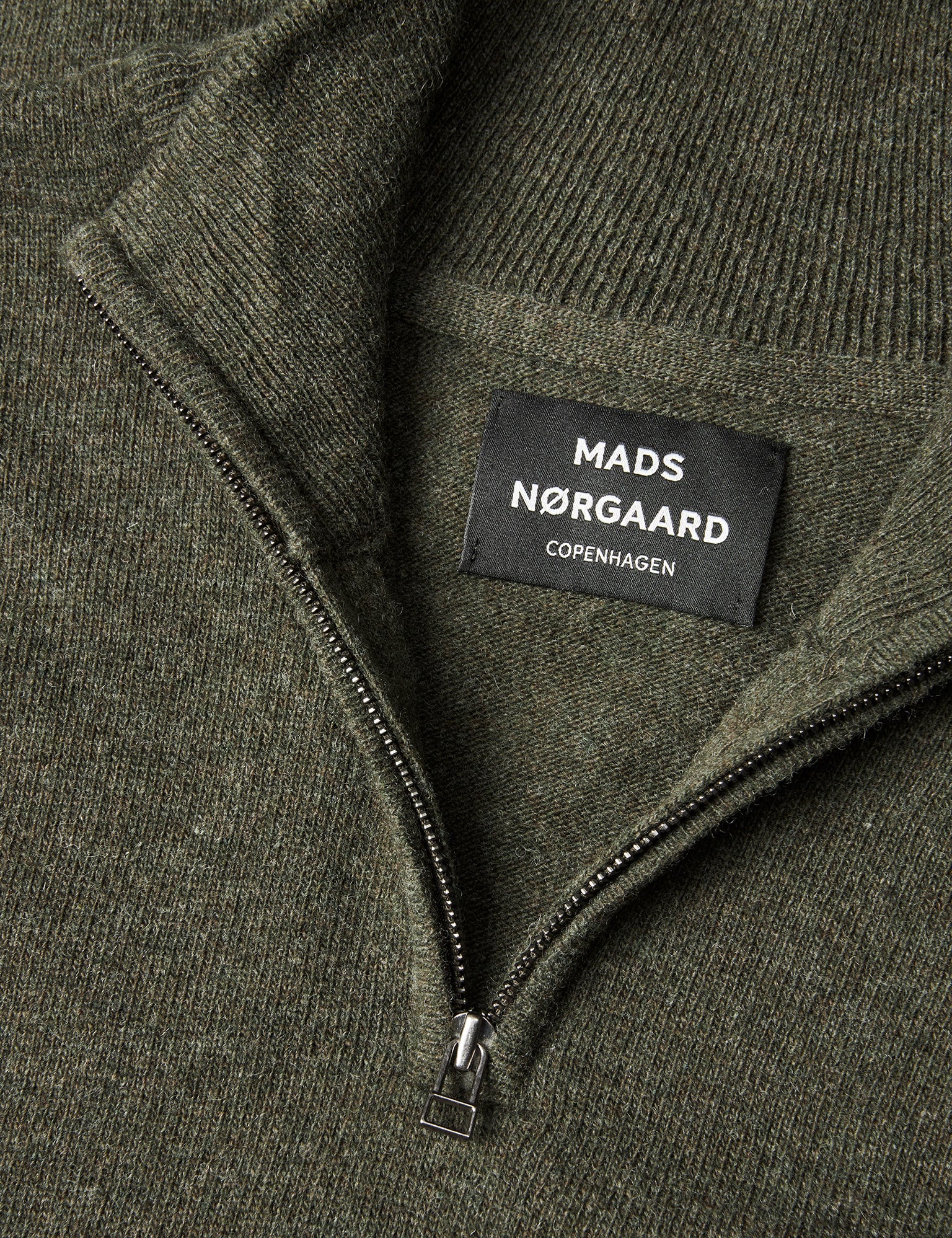 Eco Wool Halfdan Knit is made from a wool blend. The yarn is soft, the knit is fine, the fit is body-hugging and the high neck has a zipper.