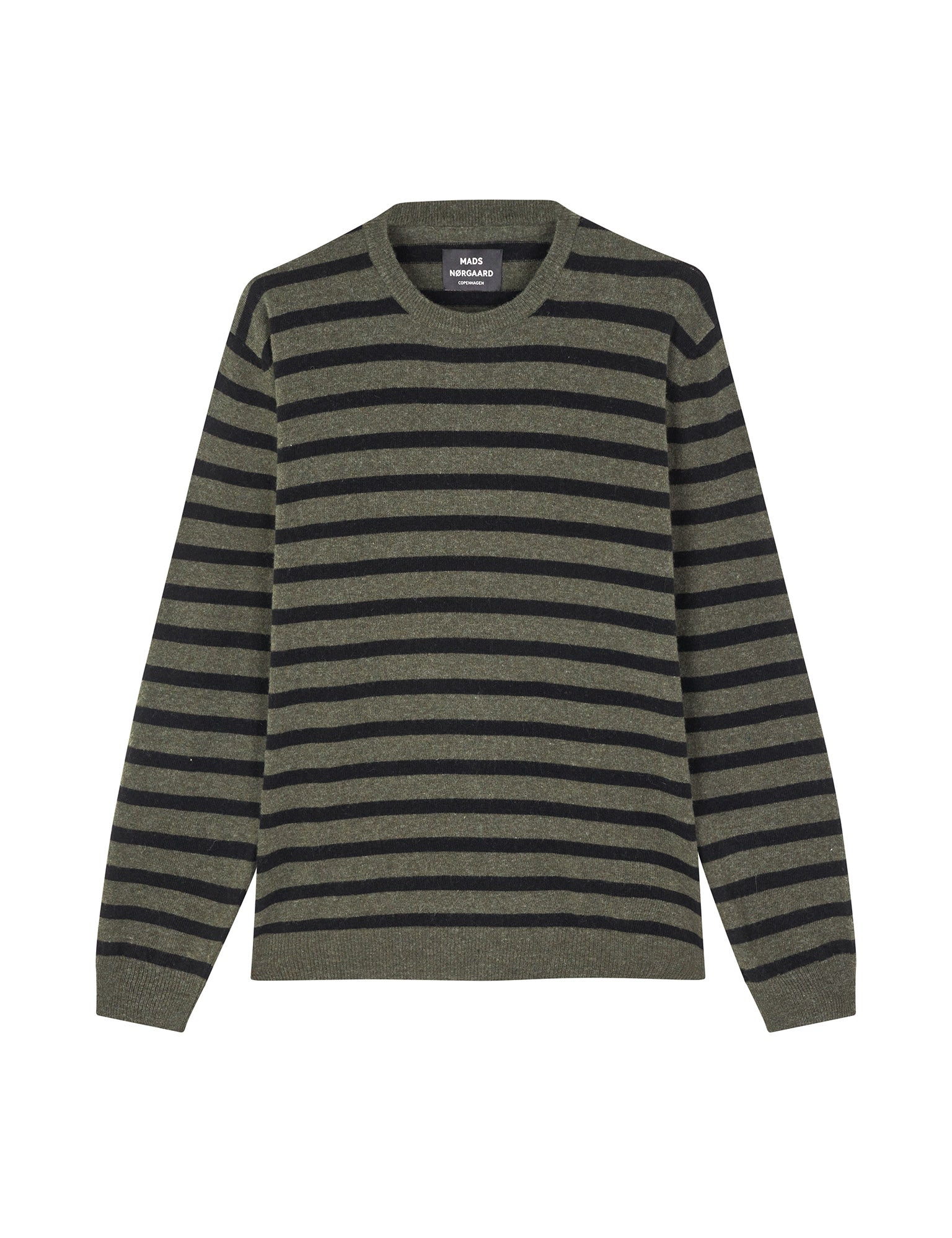 This fine-knit woollen jumper is soft and body-hugging and the neck is round.