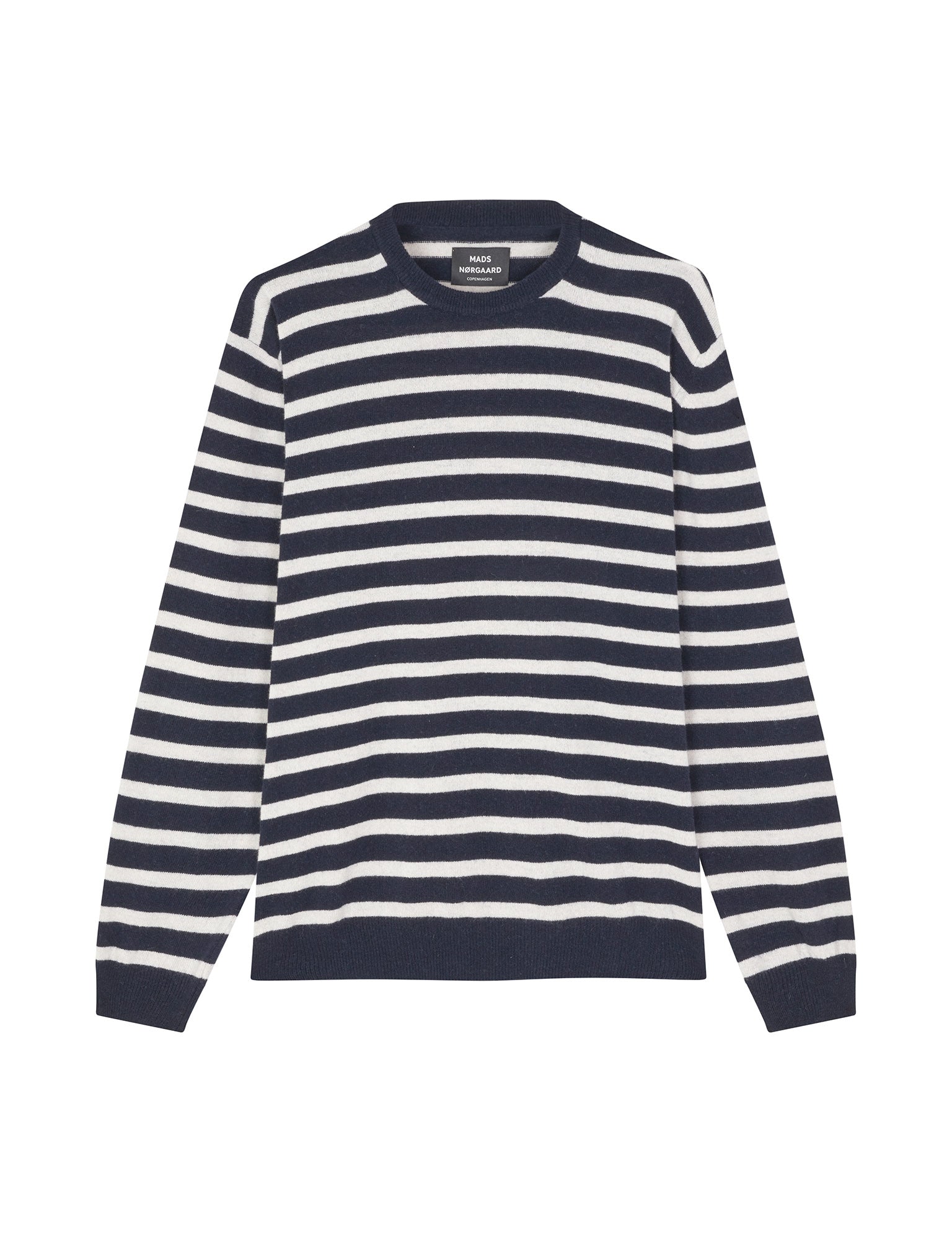 This fine-knit woollen jumper is soft and body-hugging and the neck is round.