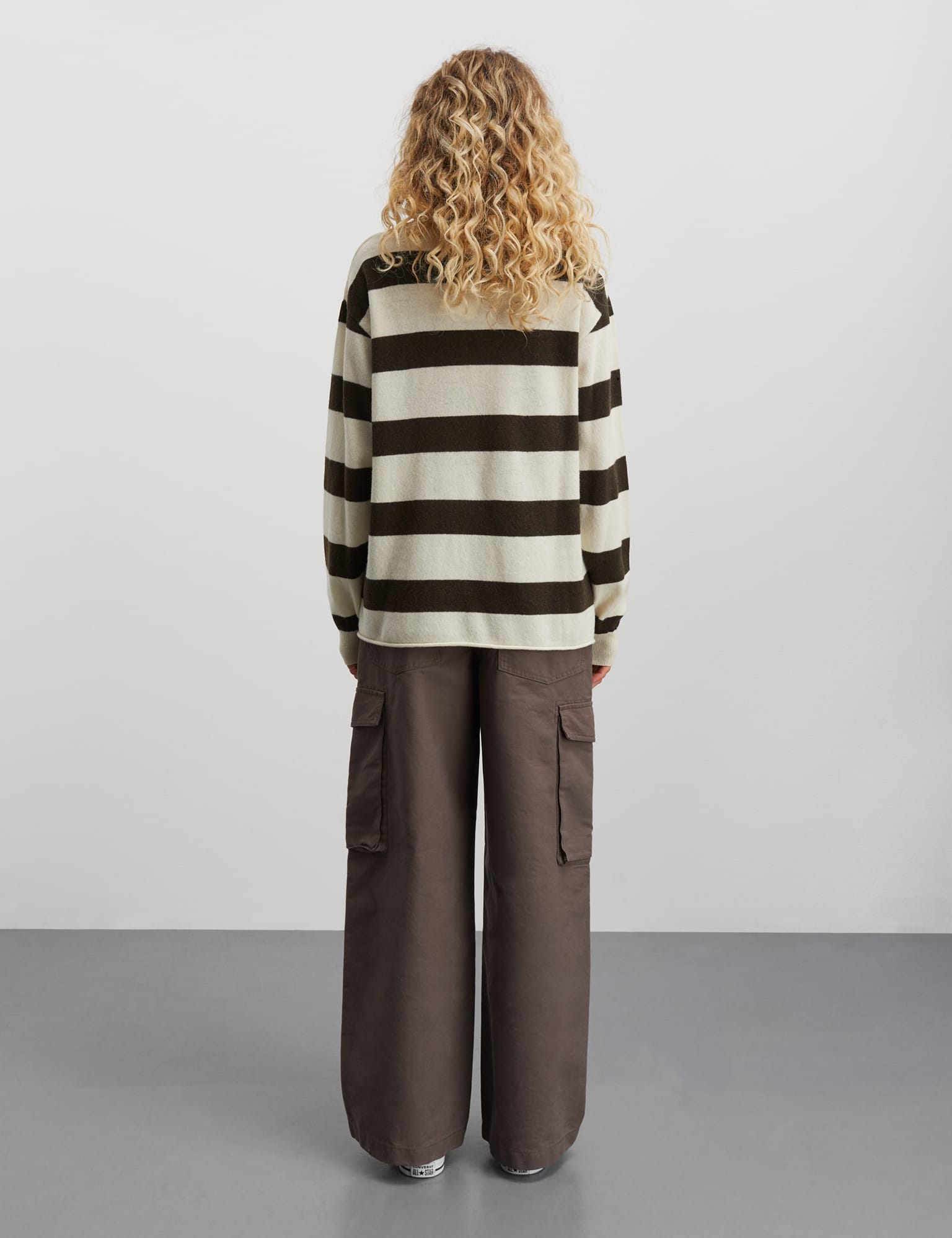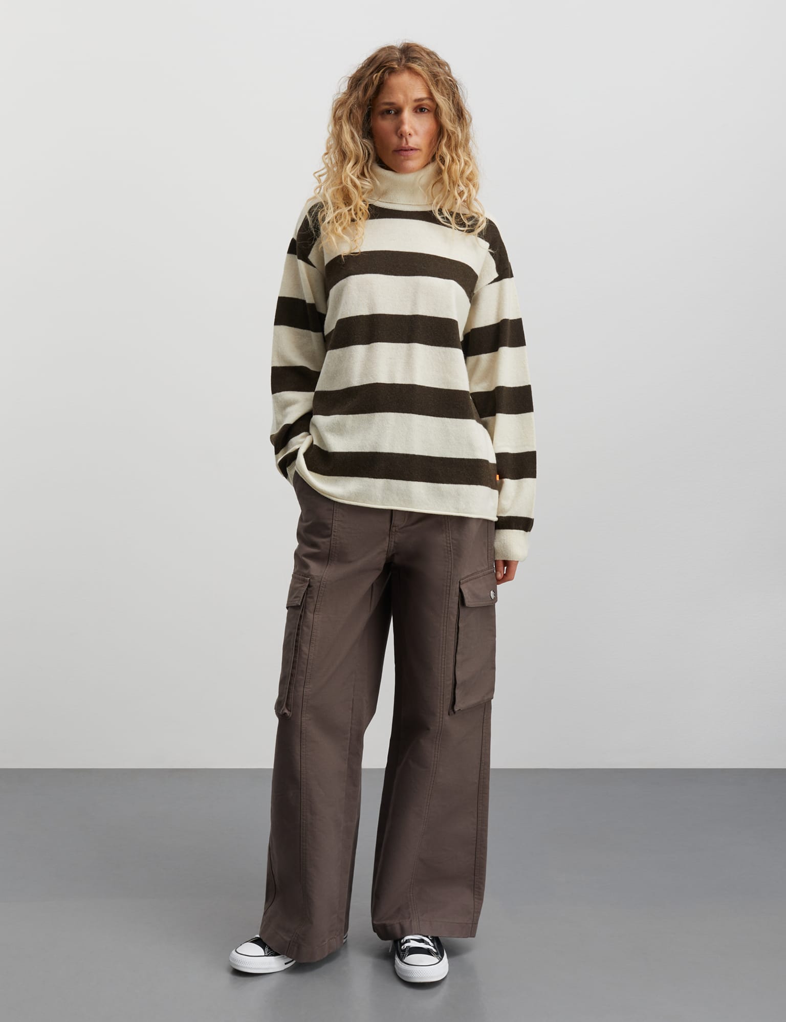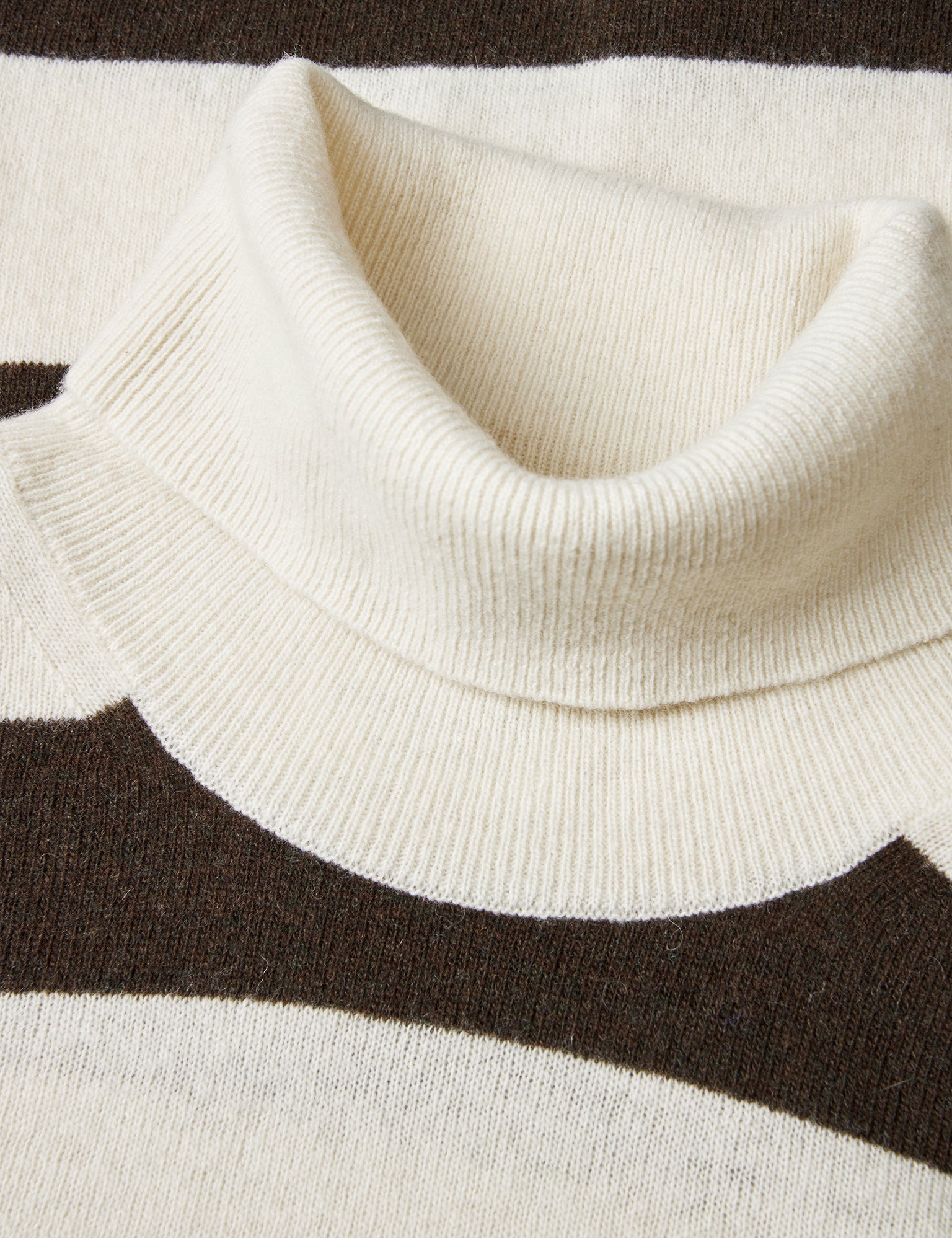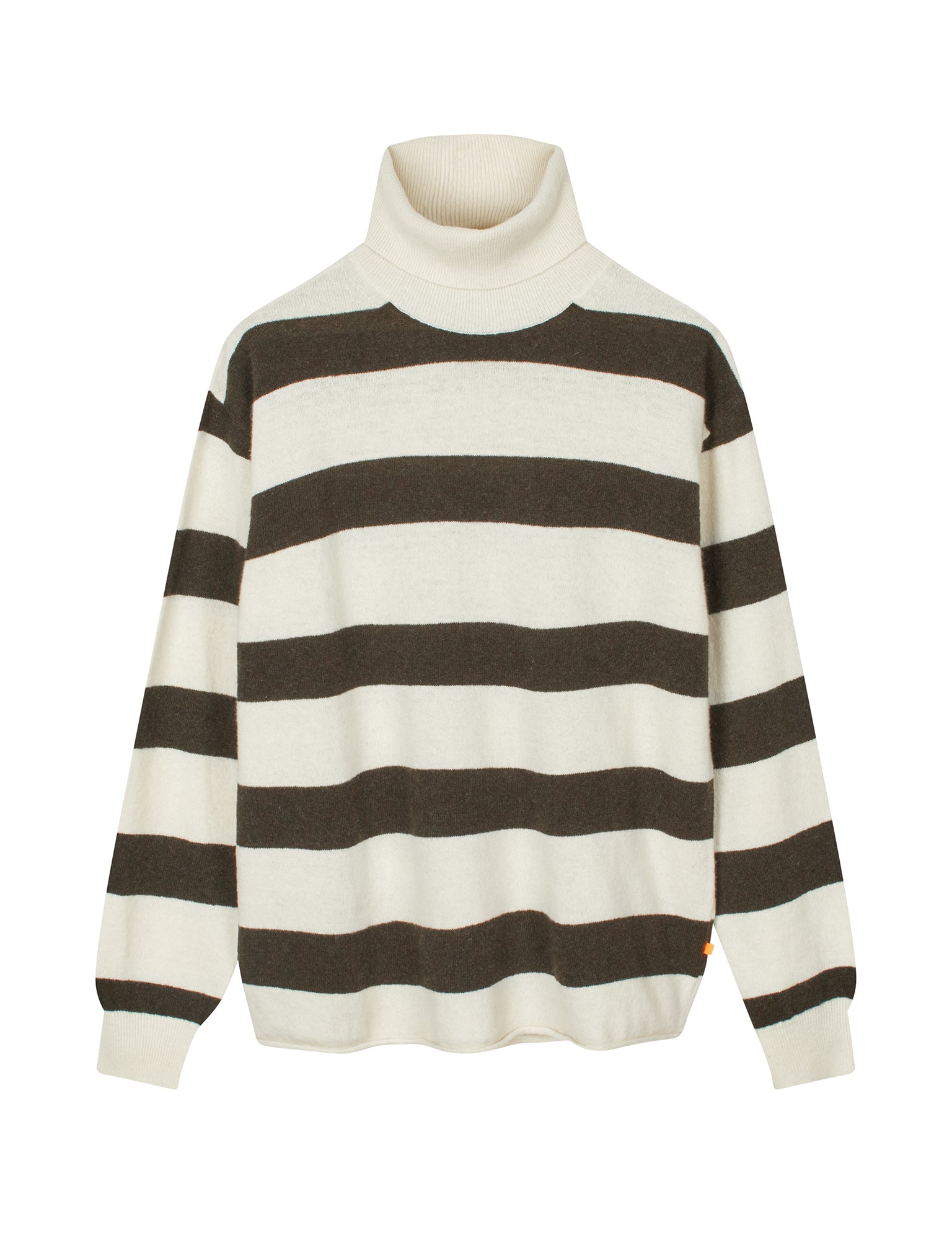 Eco Wool Stripe Kally is a simple and soft knitted sweater. The fit is slightly oversized with a high turtleneck.
