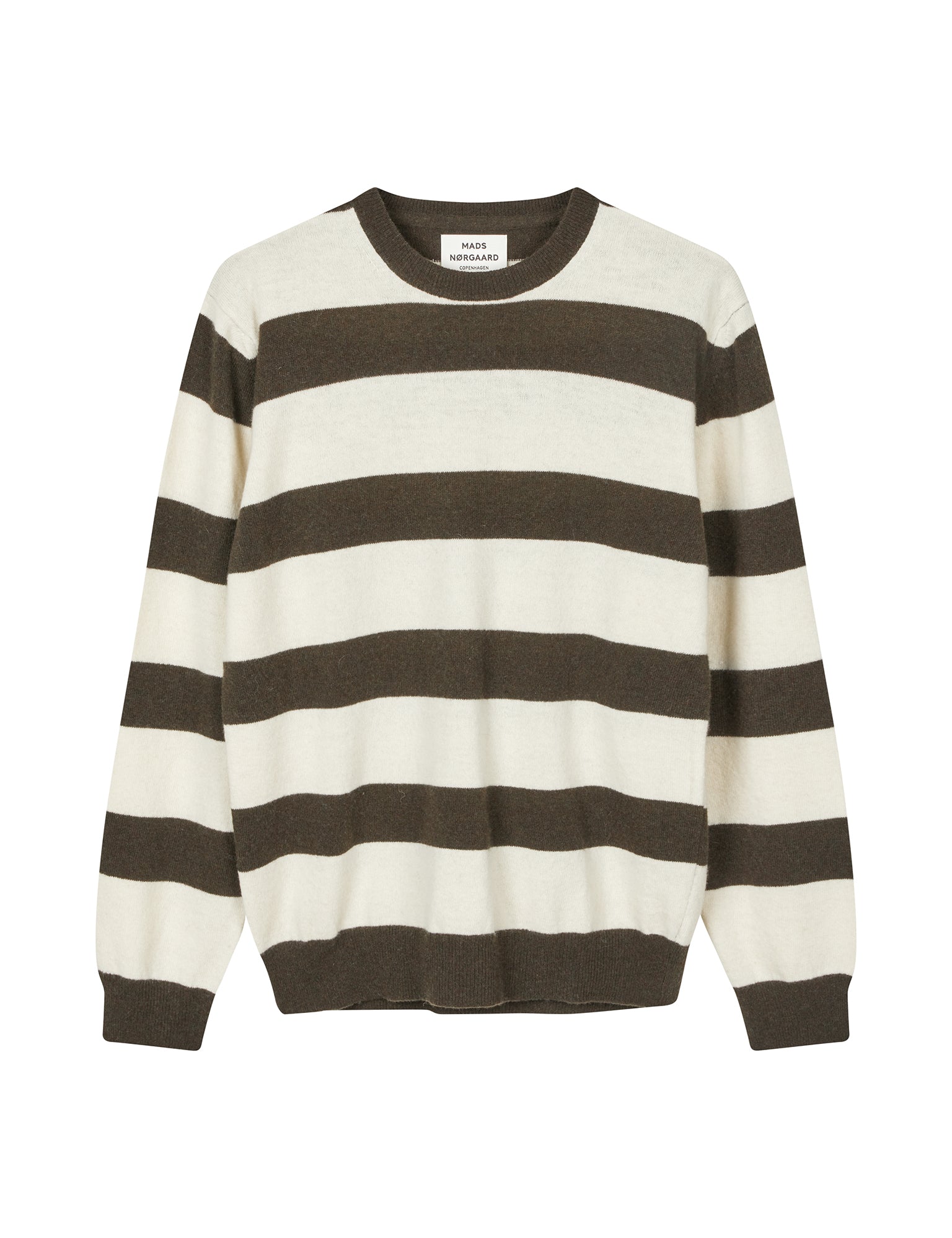 Eco Wool Stripe Kasey is a simple and soft knitted sweater. The fit is slightly oversized with a round neck.