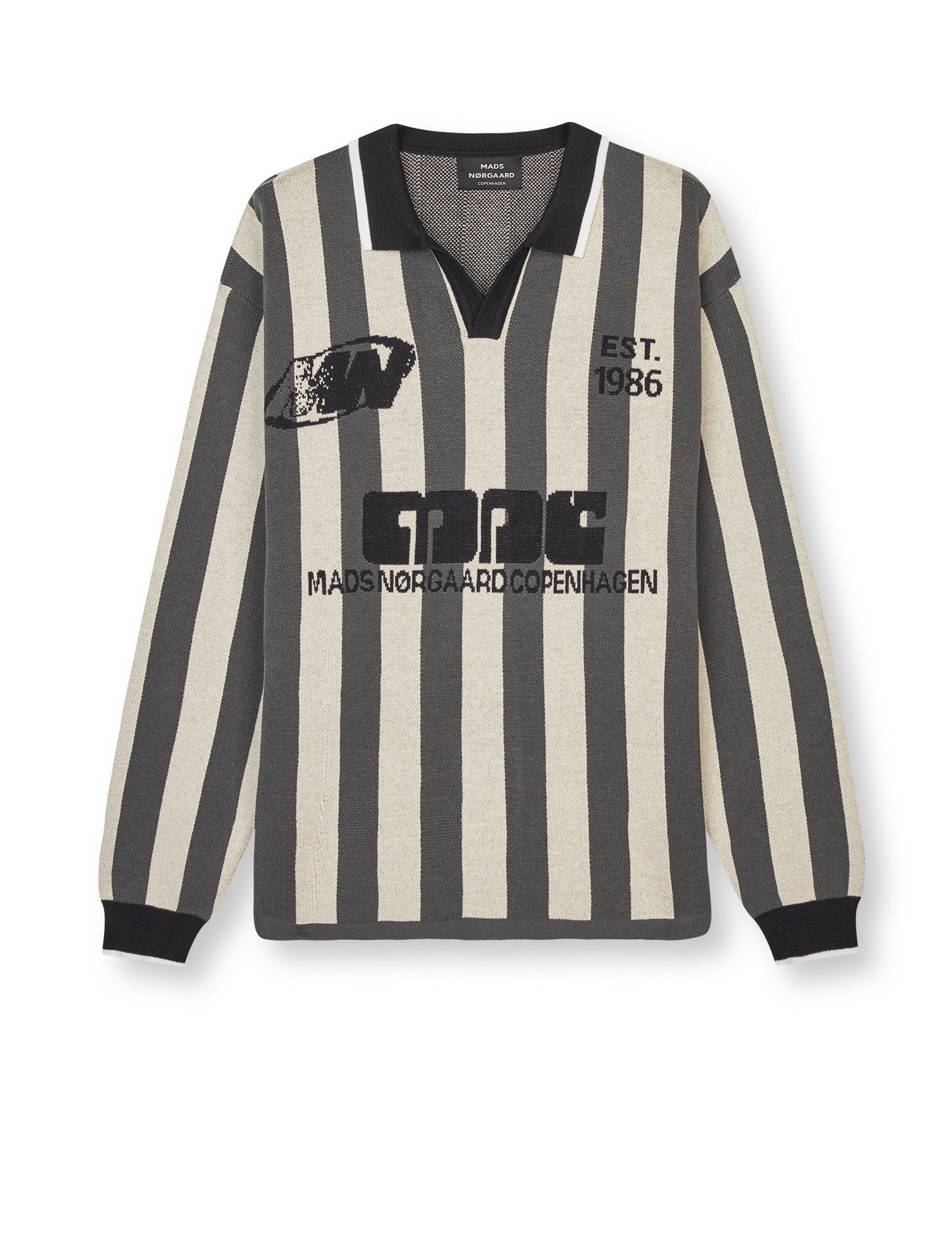 Football-style knitted jersey with polo collar, rib-knit trim and knitted logo on chest and front.