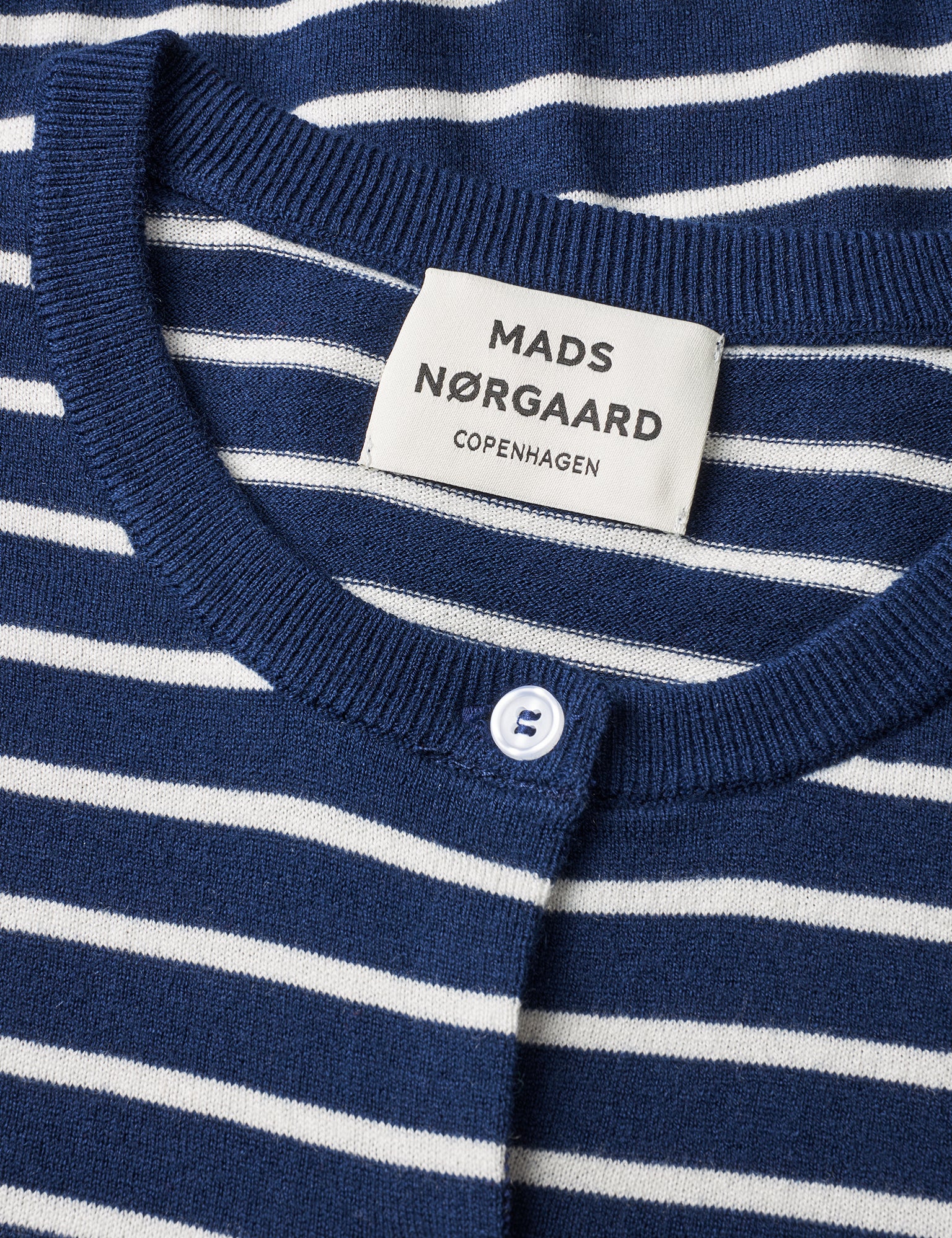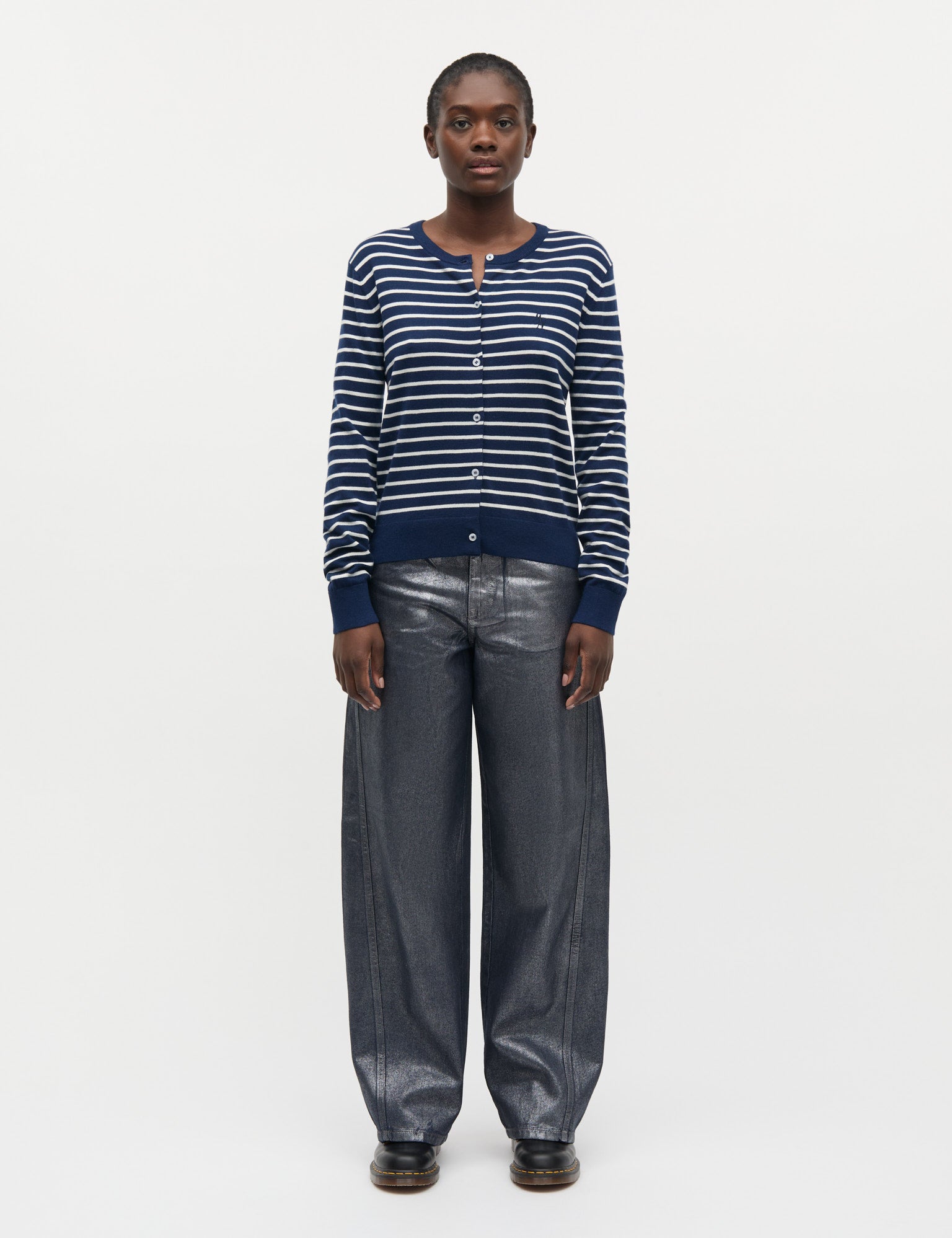 Fine-knit cardigan in a smooth finish with a round neck, small buttons, ribbed trim and embroidered mini logo.