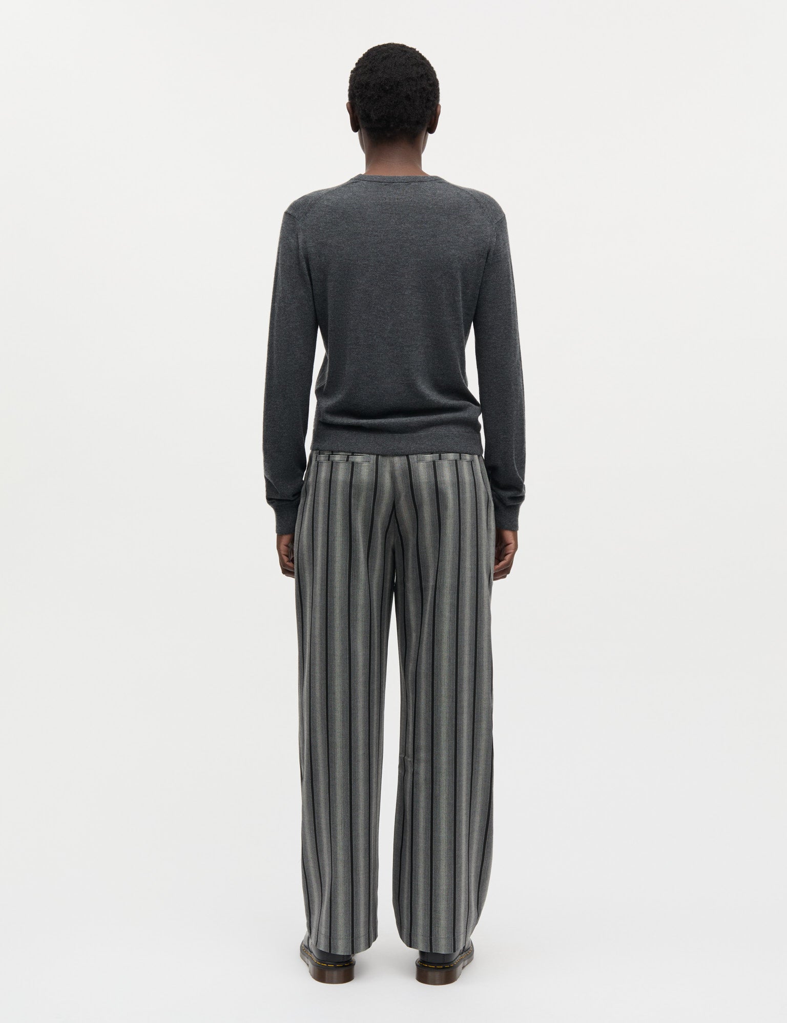Fine-knitted sweater with a smooth finish, round neck and ribbed trim.