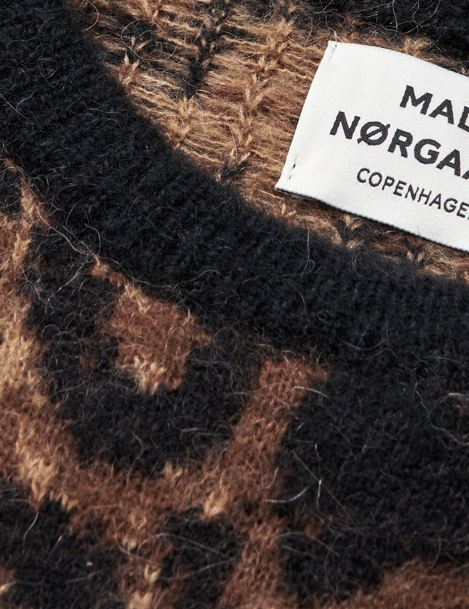 Loose-fitting, soft and boxy knitted jumper with dropped shoulders and knitted leopard print.